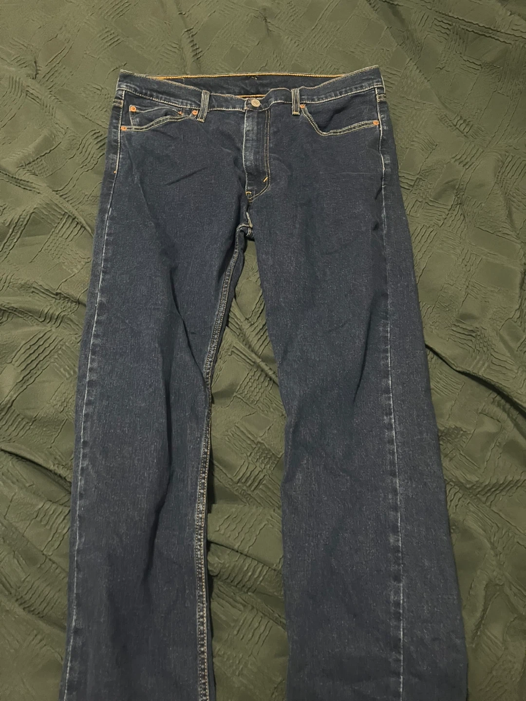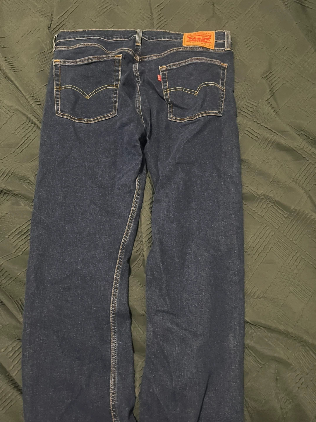 Classic dark wash Levi's 513 jeans. Waist size 36, inseam length 32. These jeans are made for comfort and durability. They're a staple for any wardrobe!