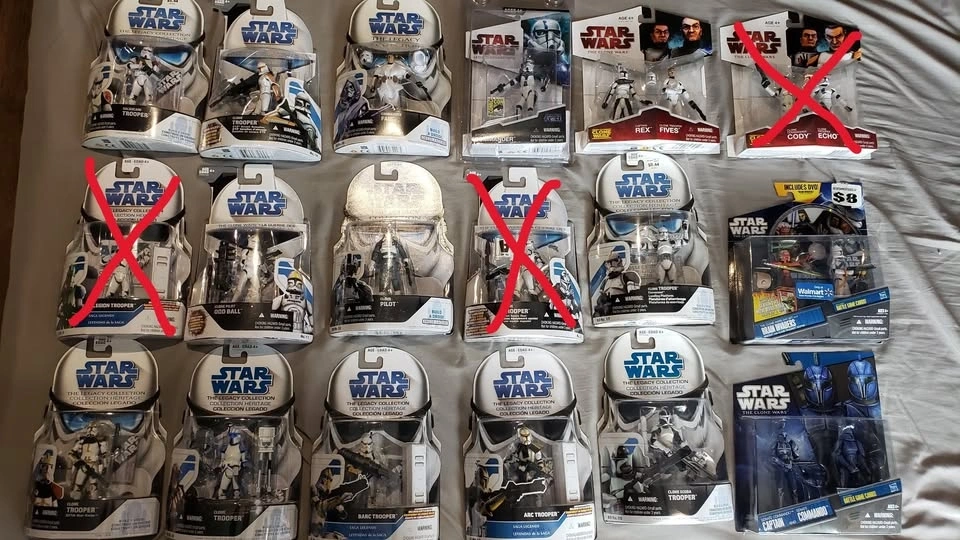 Selling a collection of Star Wars Clone Trooper figures. All are in great condition and have never been removed from their packaging. Individual prices are listed below. Feel free to message if you have any questions!
