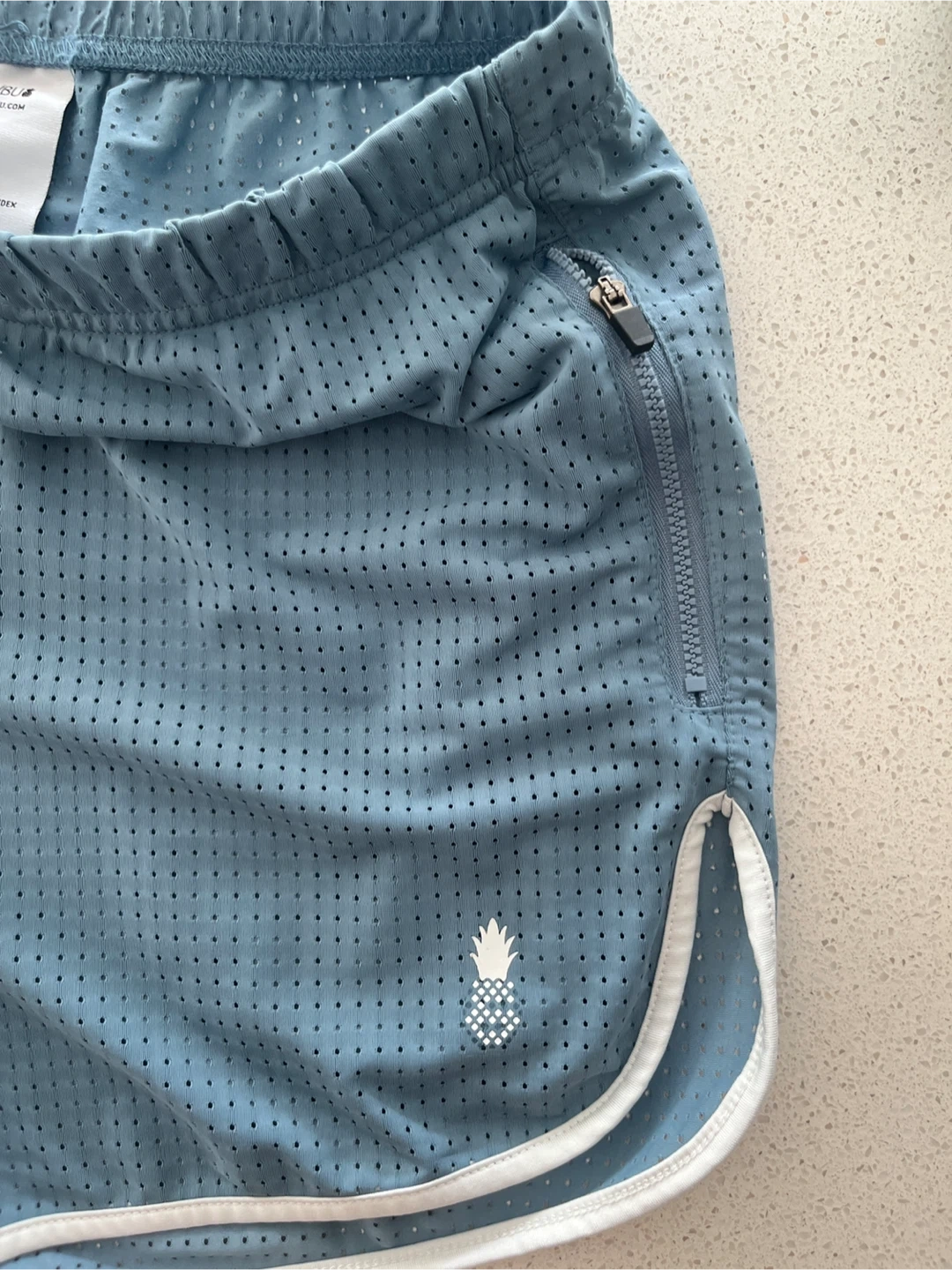 These JJ Malibu shorts are a size medium. They're made with 90% polyester and 10% spandex for a comfortable fit. The mesh fabric offers breathability during workouts. Fits more of a large?