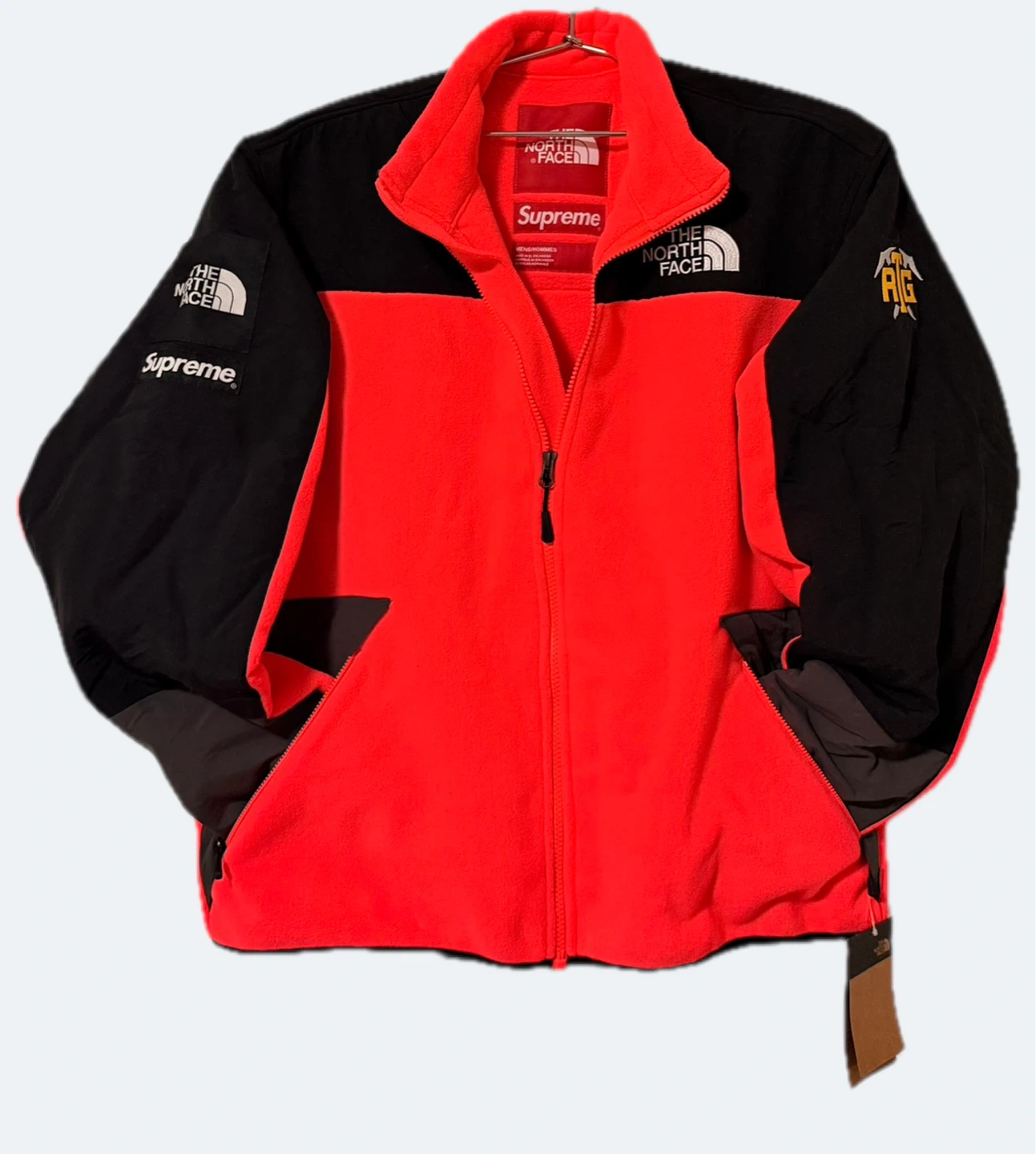 Selling a Supreme x The North Face RTG Fleece Jacket in size medium. This brand new jacket is 100% original, ready to have a new owner! This jacket features a bold color block design in red and black, with the iconic logos of both Supreme and The North Face. Perfect for staying warm and stylish!