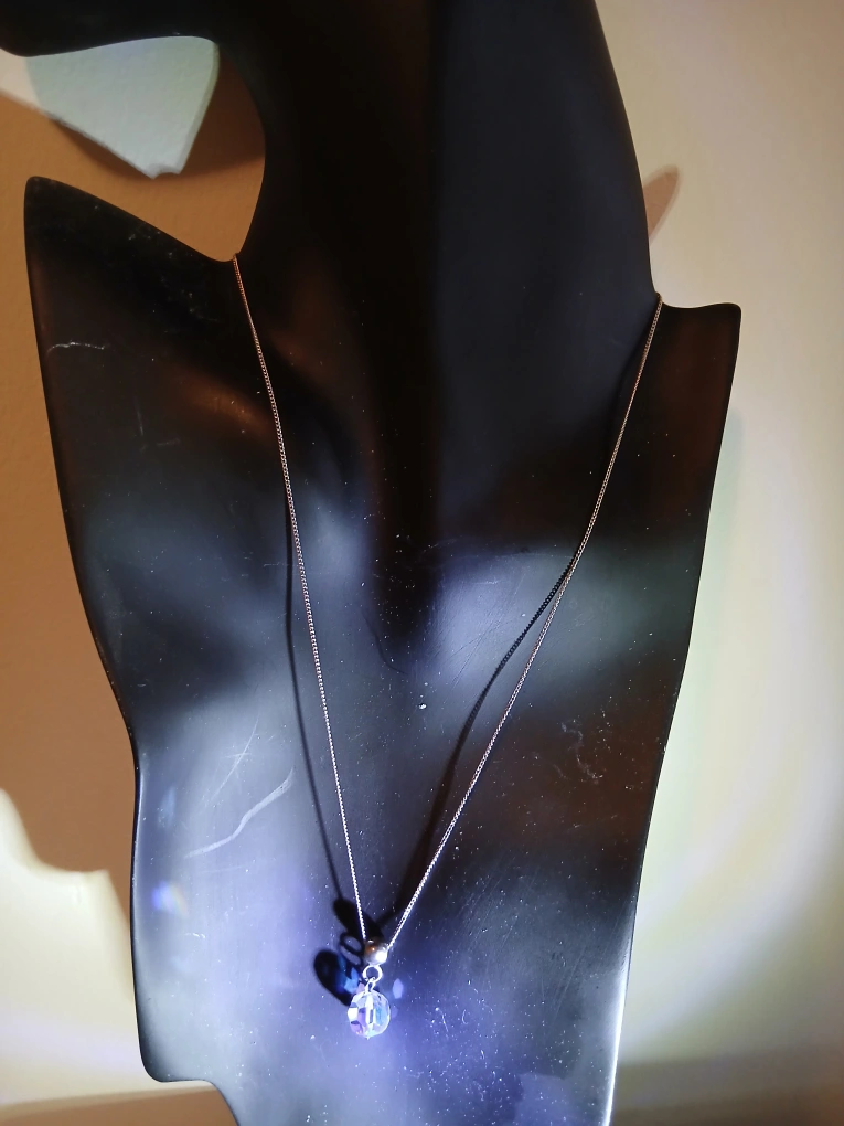 A delicate silver chain necklace featuring a sparkling clear crystal pendant. The chain has an adjustable clasp for a comfortable fit.