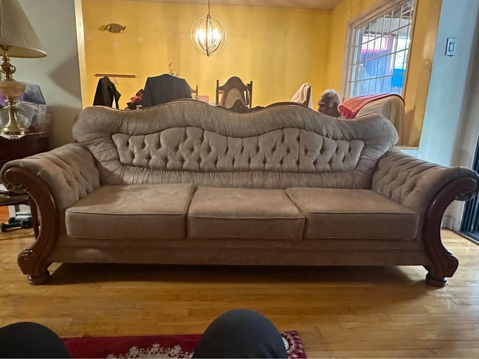 Selling a comfortable couch as part of a moving sale. It's in good condition and has plenty of life left. Perfect for a living room or den.