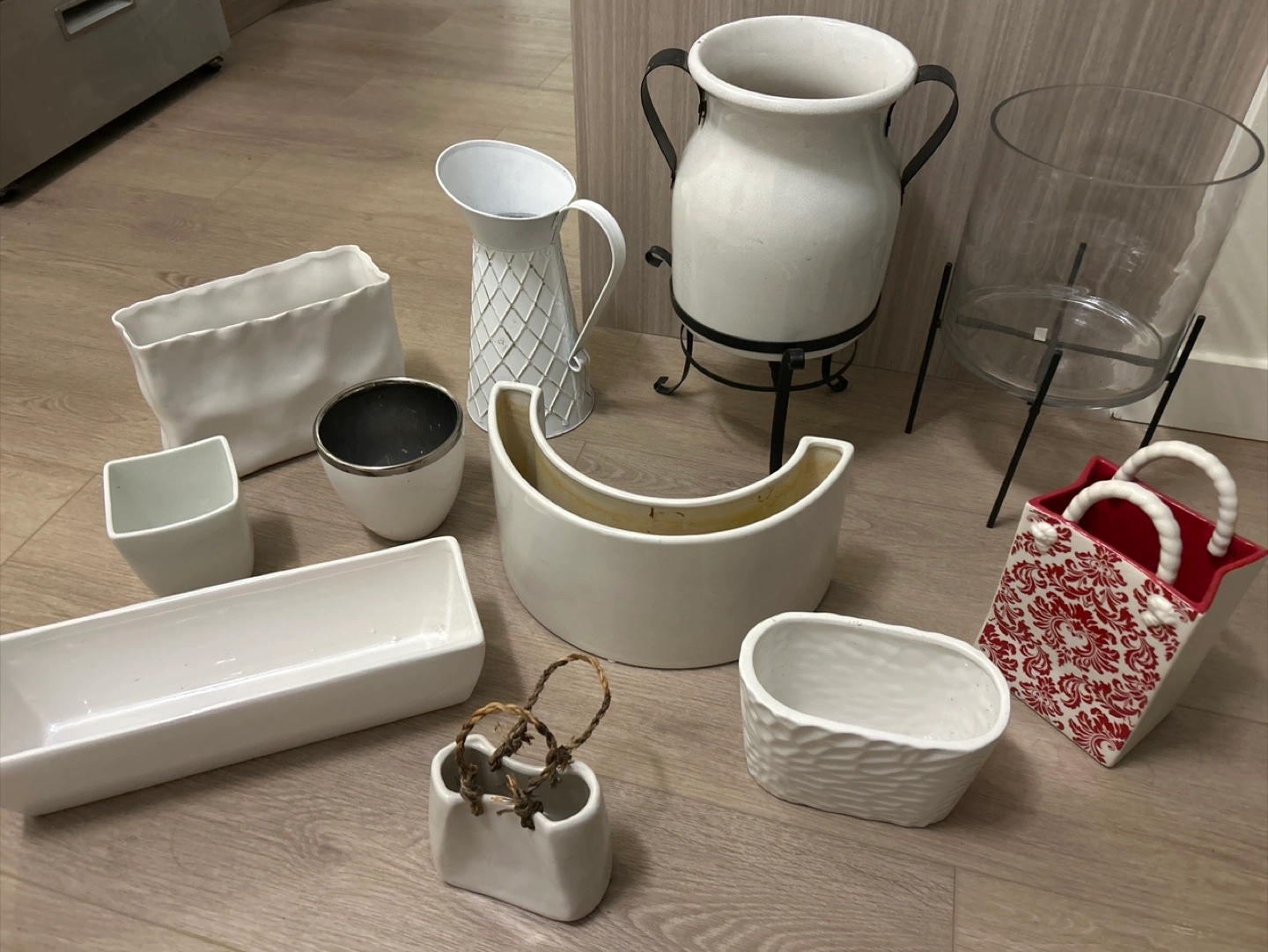 5$ and up Assorted Ceramic and Glass Vases and Planters