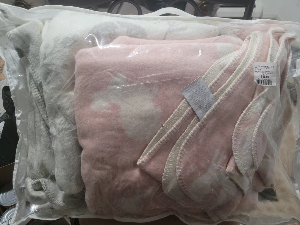 Selling a brand new, super soft pink and white cloud blanket! It's still in its original packaging, never been used. The material is really plush and cozy, perfect for snuggling up on the couch. The blanket features a cute cloud pattern in soft pink and white, making it a lovely addition to any room. It was originally bought for $15.99, and I'm hoping it can find a good home! $5 each