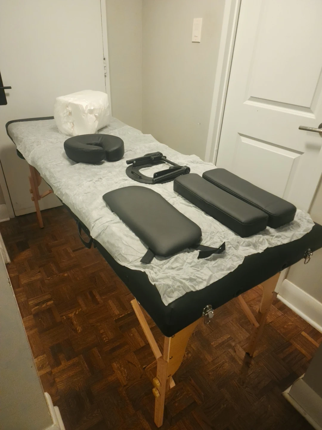 【SIMPLE INSTALLATION】: The massage comes assembled in the box, which does not require any tools for installation. To unfold the table, simple stretch it from the middle and let the legs out and adjust the height to your own preference. The accessories(only for all included type , including the ergonomic face cradle, armrest, and face cushion are detachable if you do not need them.