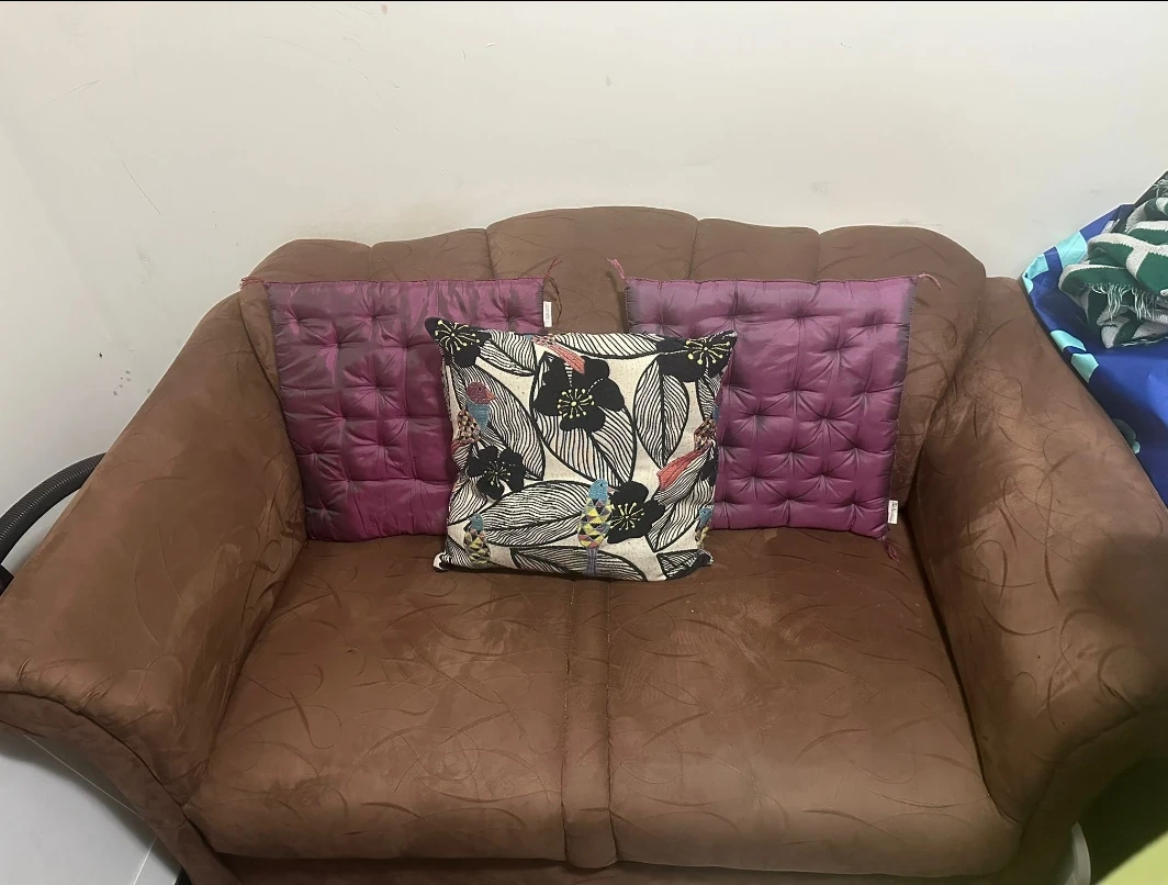 Selling a set of assorted decorative pillows. Includes a brown couch pillow, two purple pillows, and a black and white floral pillow. They're in good condition and would be a great addition to any living room or bedroom
