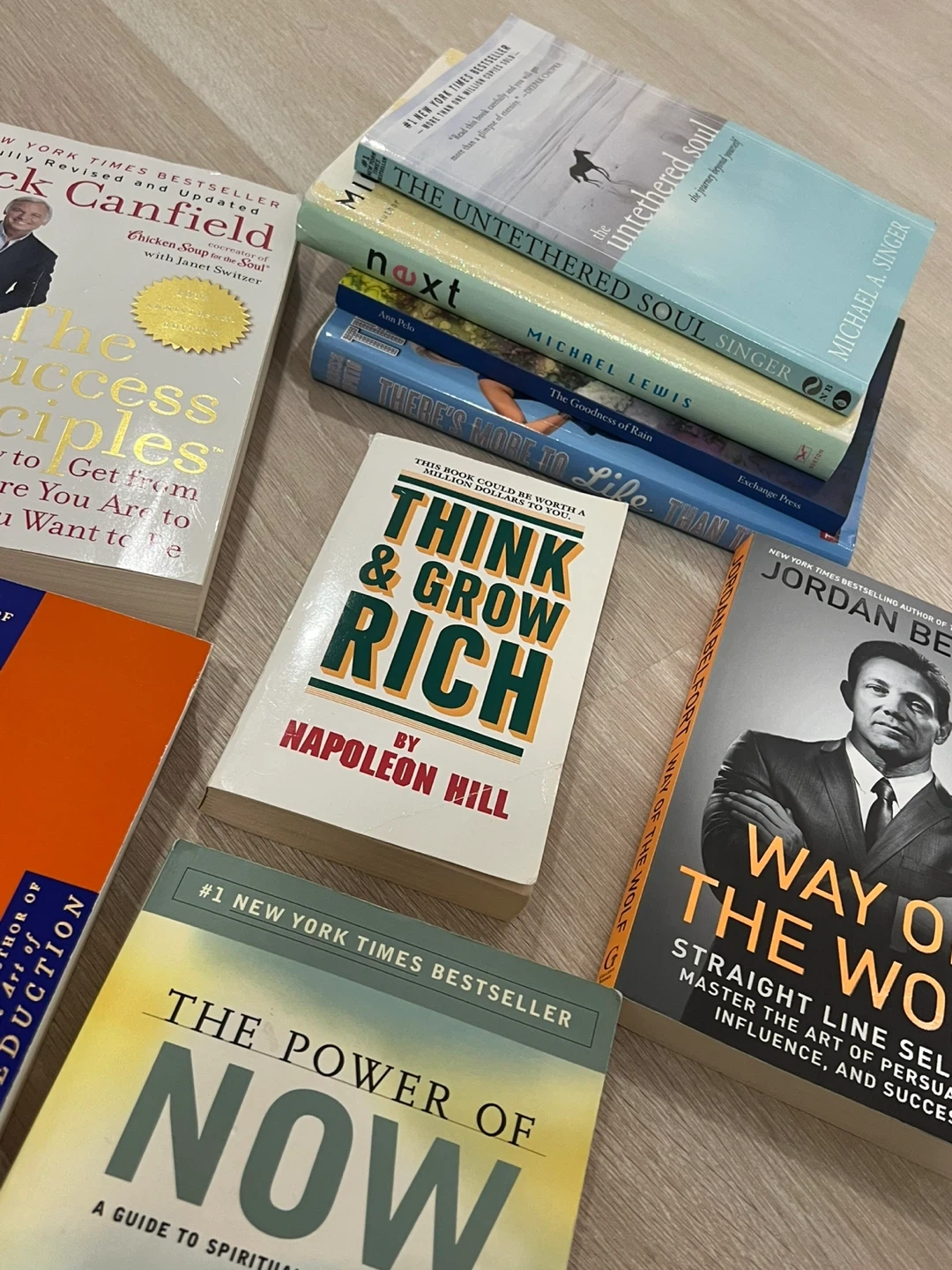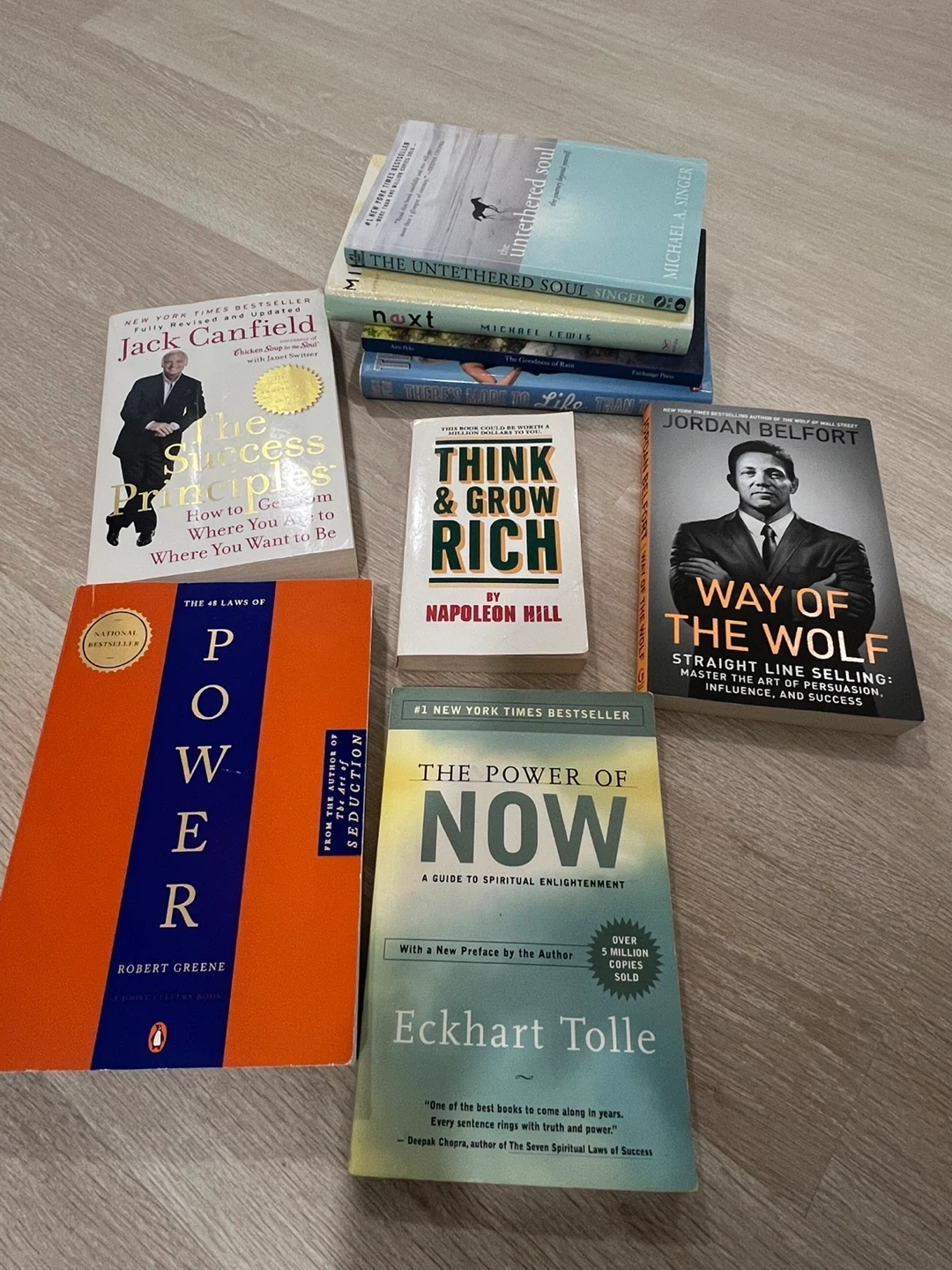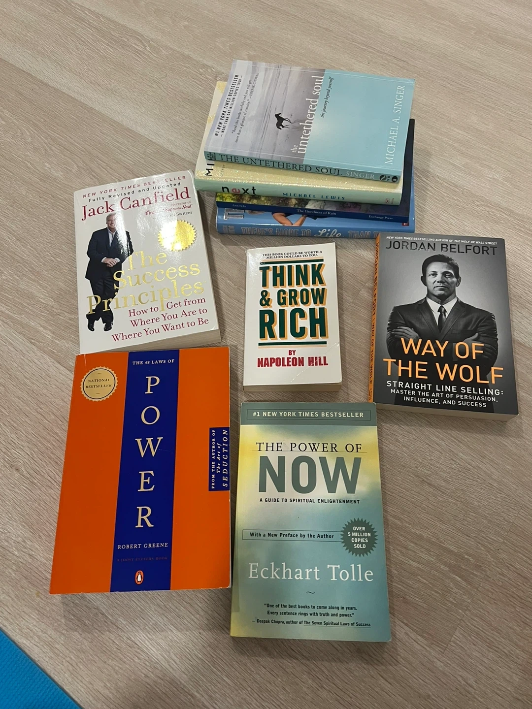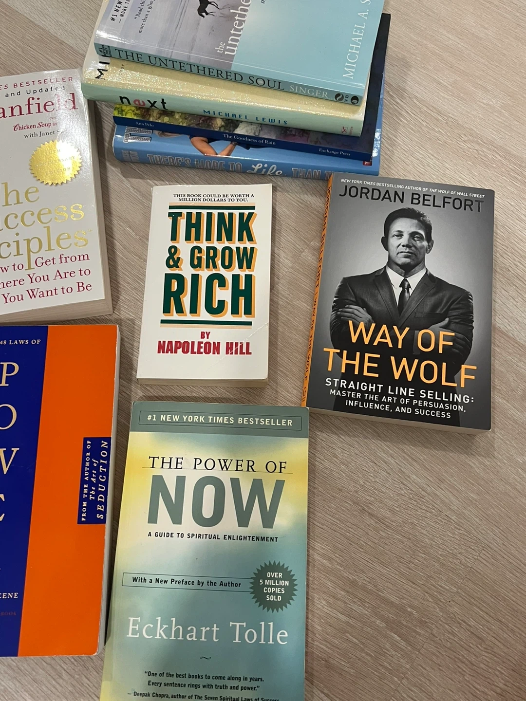 This bundle includes popular titles like "The Success Principles," "Think & Grow Rich," "The Power of Now," and "Way of the Wolf." They're great reads for anyone interested in personal development and business strategy. Various authors and publishers are represented in this collection. Discounts available when buying bundles. $10 each.
