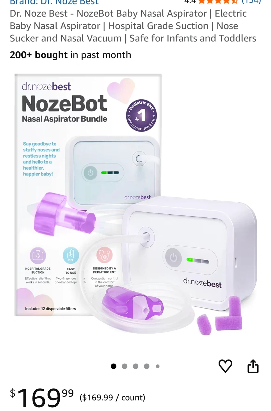 Dr. Noze Best - NozeBot Baby Nasal Aspirator | Electric Baby Nasal Aspirator | Hospital Grade Suction | Nose Sucker and Nasal Vacuum | Safe for Infants and Toddlers