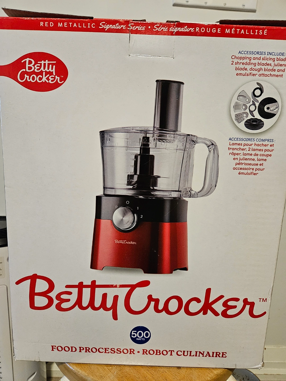Brand New Betty Crocker 500-Watt Food Processor - Red Metallic