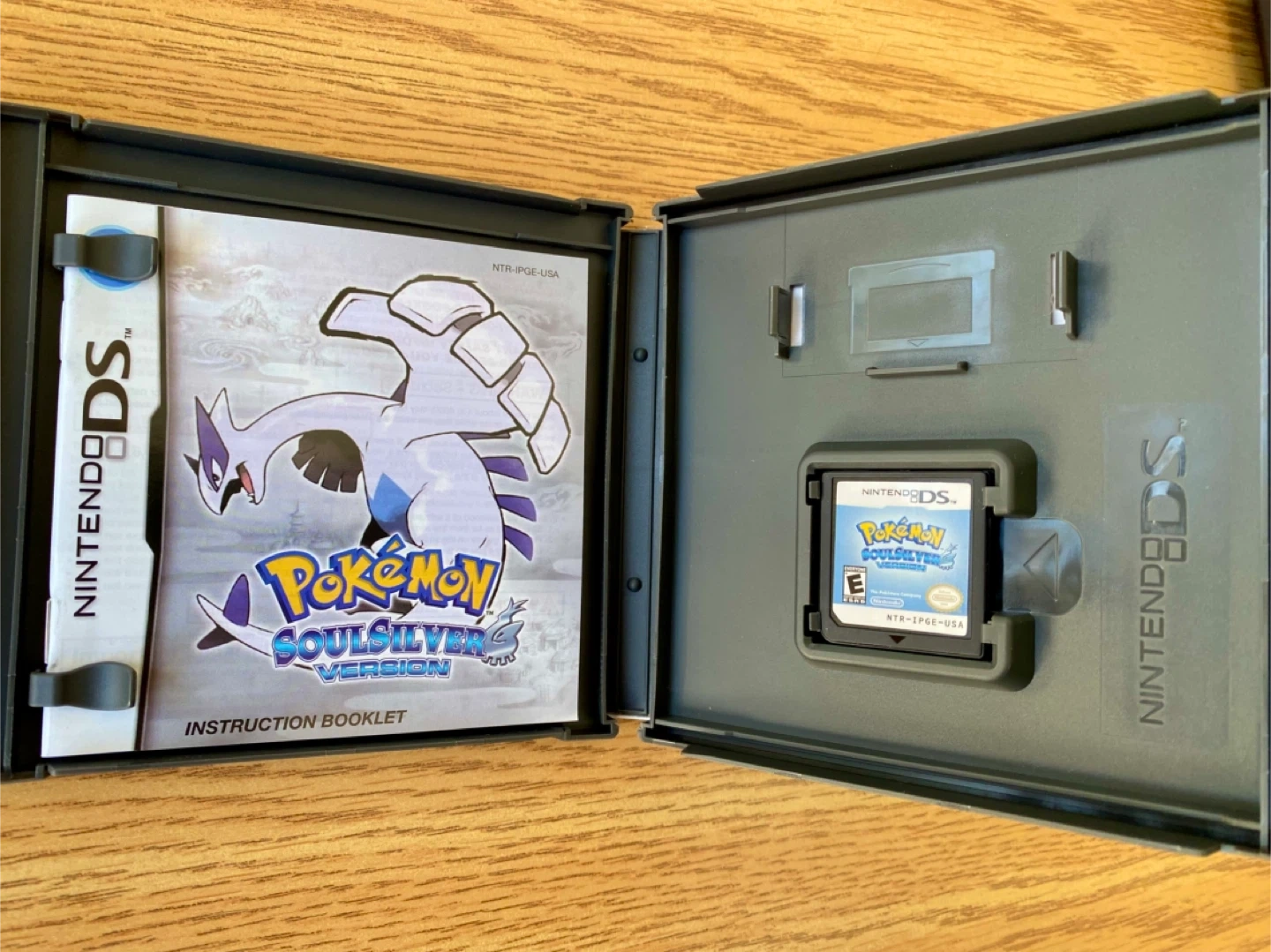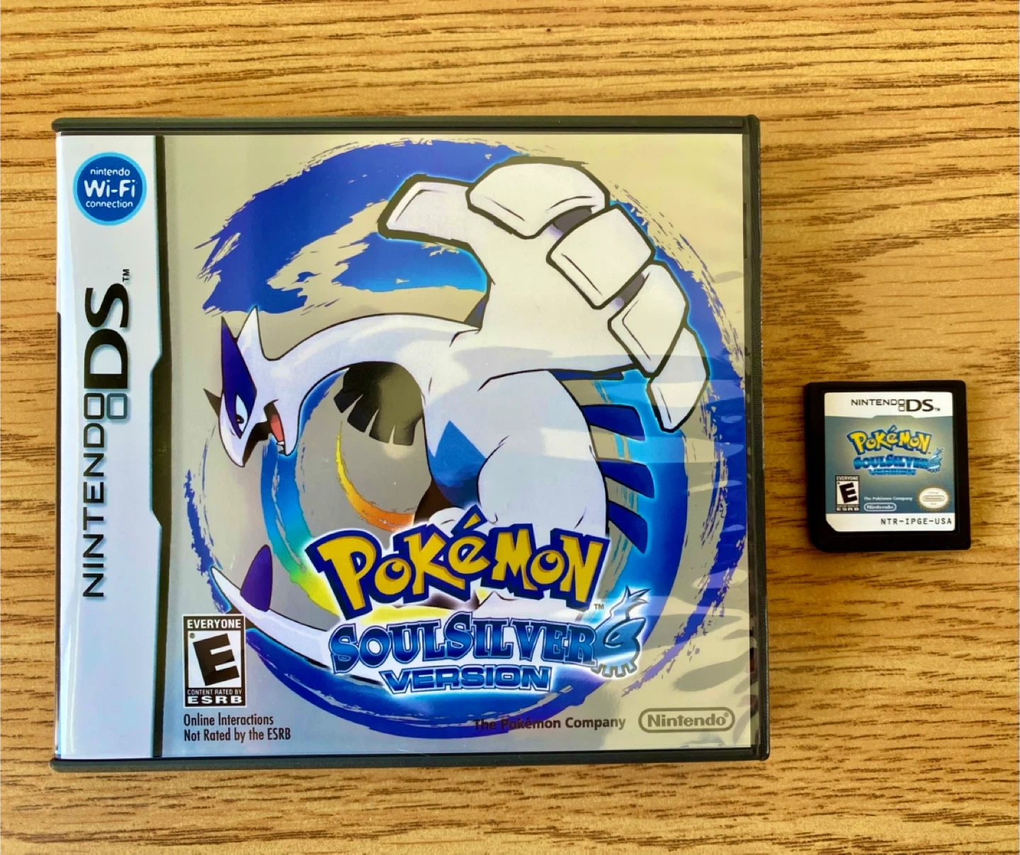 This is the Nintendo DS game Pokemon SoulSilver Version. It includes the game cartridge and instruction booklet. It's compatible with Nintendo DS and DS Lite systems.