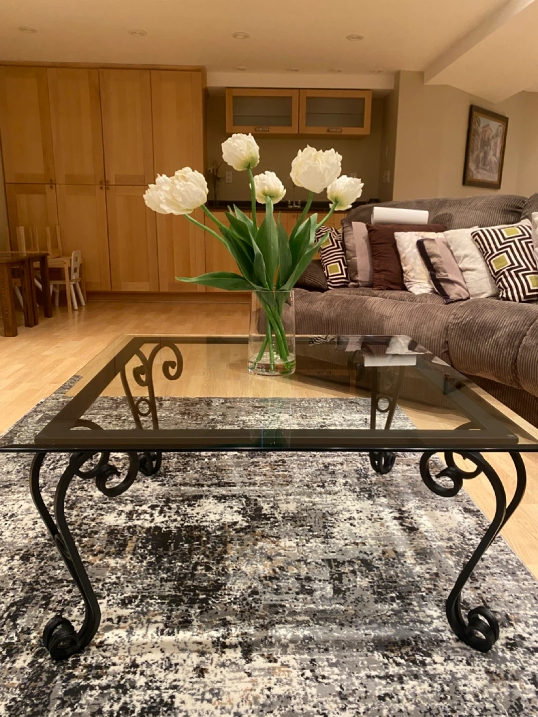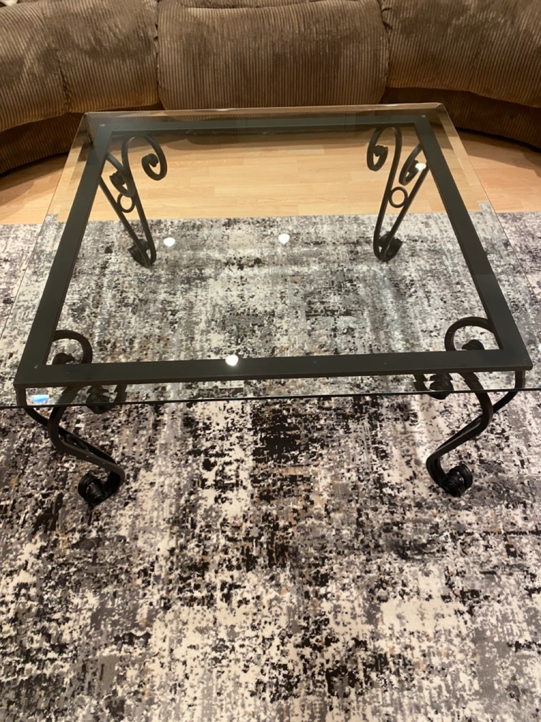 Glass Top Coffee Table with Wrought Iron Base