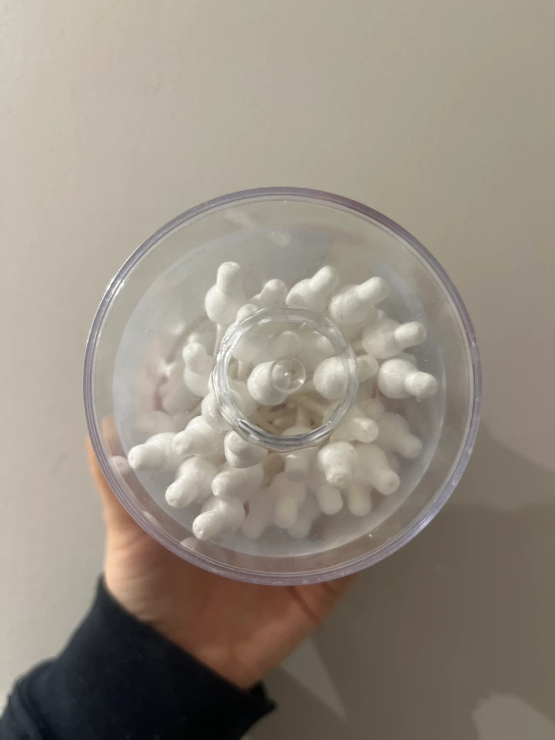 MINISO cotton swabs with a cute sour shape. They're gentle for ears and nose care. Includes 60 pieces in a clear container. Opened and used slightly, but still have some inside, no need anymore