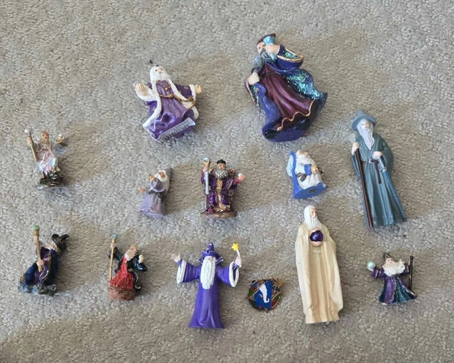 10 wizard figurines, including 2 plastic Lord of the Rings (Saruman and Gandalf). Located in Stony Plain. Can meet in Millwoods during weekdays around 3:45 PM or at the Stony Plain Road Walmart around 4 PM.