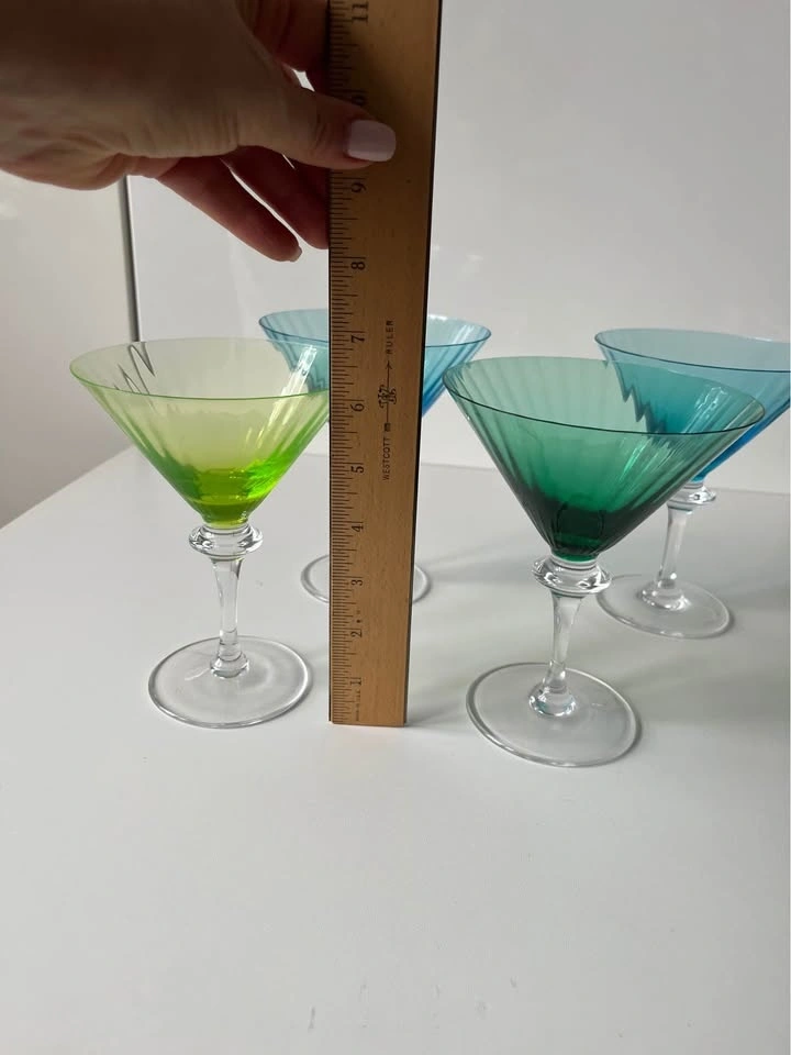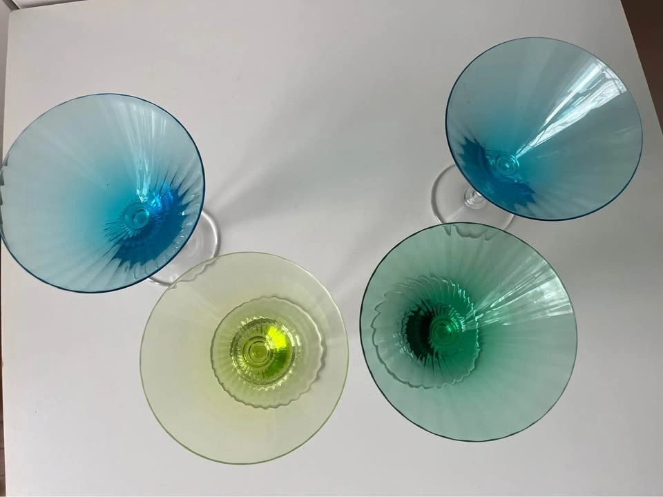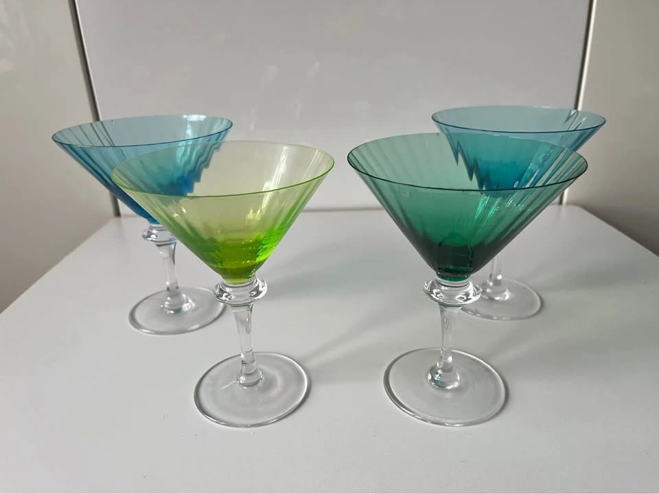 4 Cristal Sevres Colorful Martini Glasses Vintage