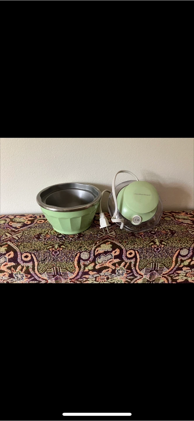 This Hamilton Beach Half Pint Soft-Serve Ice Cream Maker is in a fun green colour. It's a compact appliance for making frozen treats. Comes with the removable freezer bowl and lid.