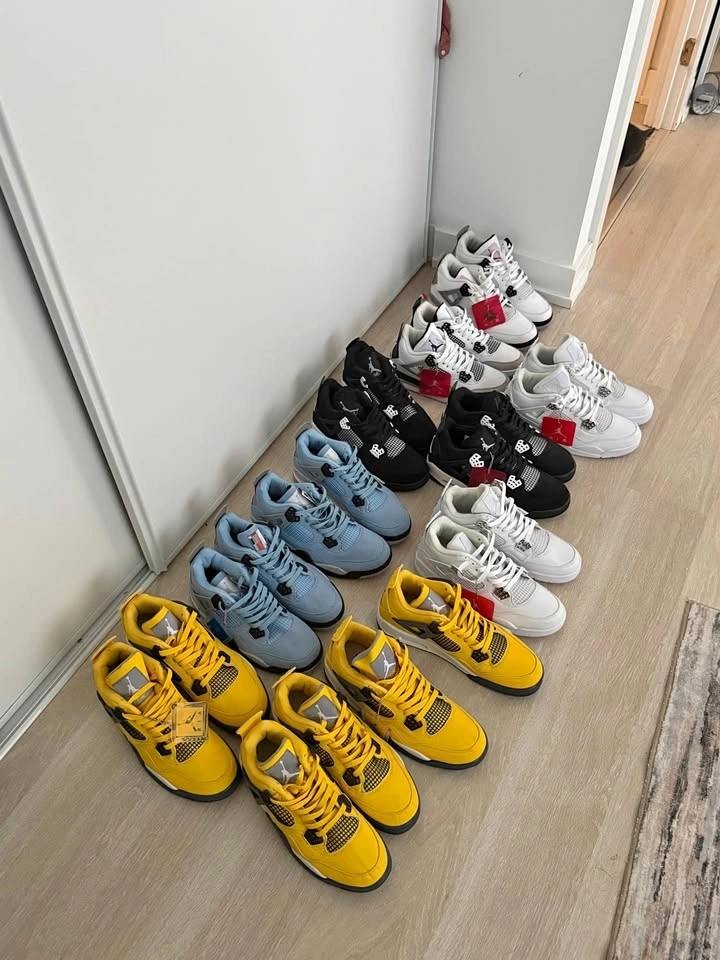 All of them are brand new and never worn. Sizes: Pure money: 8.5 & 10. Yellow lightning: 8.5 9.5 10. White thunder: 9.5. UNC: 8.5 & 9.5. Military: 8.5. Cements: 11.
