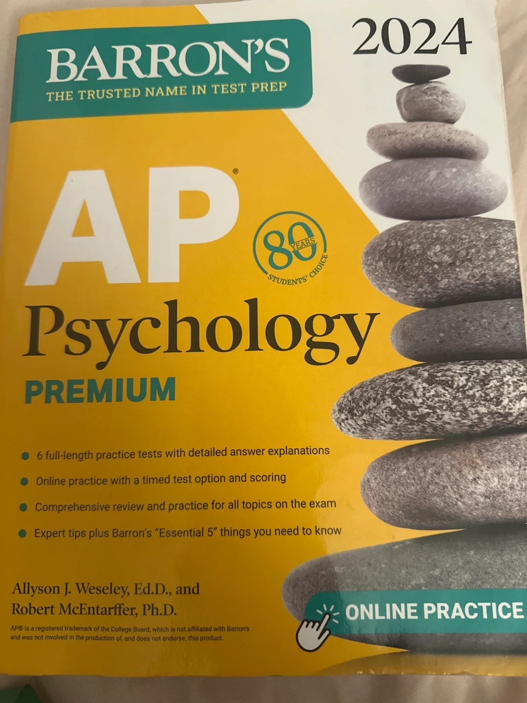 This Barron's AP Psychology Premium study guide for 2024 is designed for test prep. It includes 6 full-length practice tests with detailed explanations and online practice options. You'll also find comprehensive review of all exam topics and expert tips.