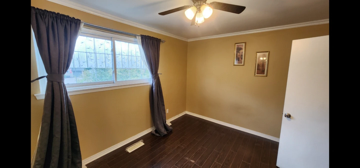 3 rooms and private bathroom for rent, upstairs floor in semi detached house, shared main floor kitchen, living room and laundry, patio and parking available.