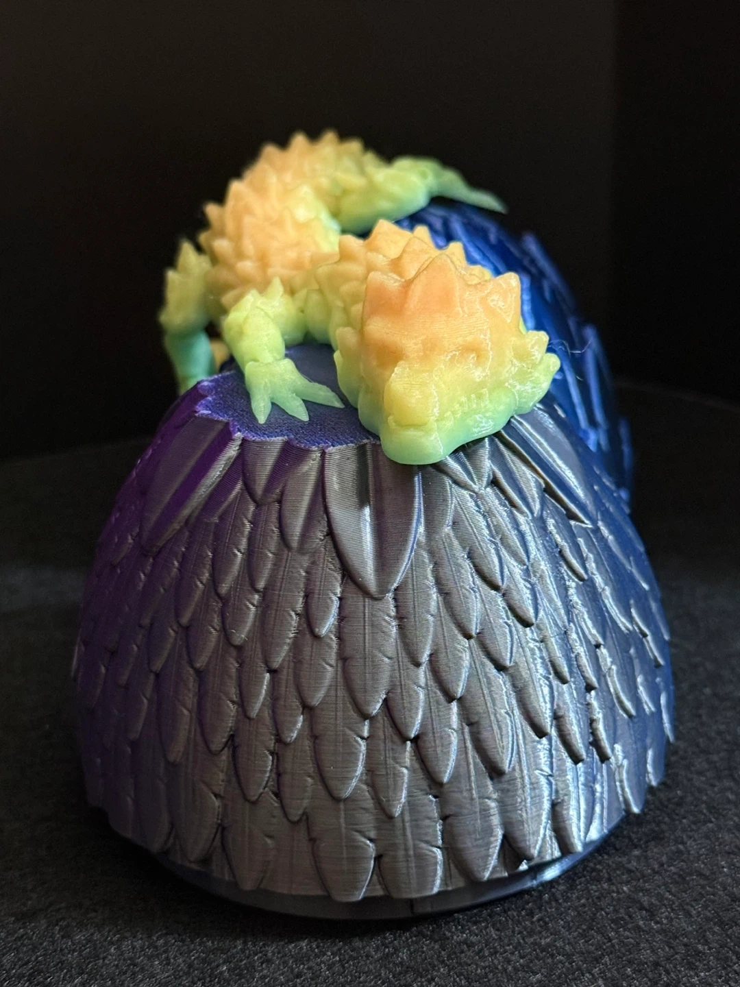 This is a beautiful articulated dragon! It's a unique piece that can be posed in many different ways. The colours are really vibrant and eye-catching, making it a great addition to any collection or as a fun desk toy