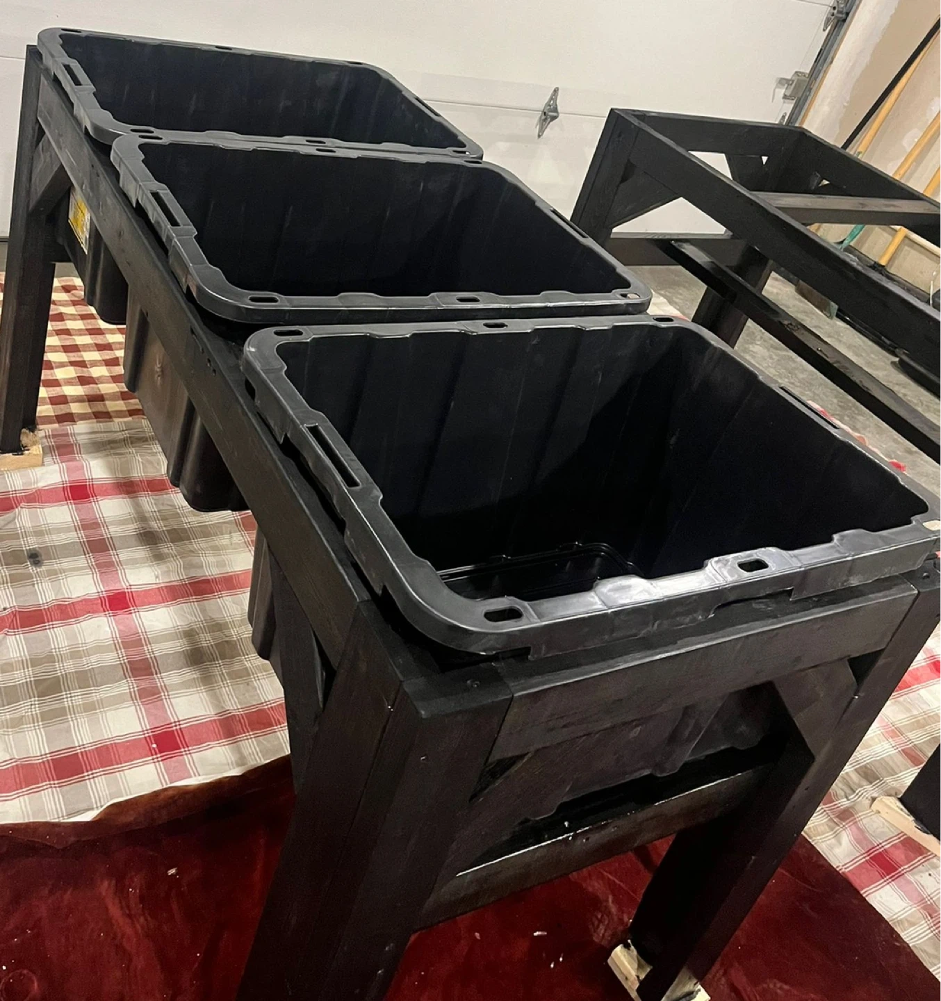 Raised bed gardens with plastic totes and its cover is included. If you want them on wheels $40 extra. We make on order. 1 week required.