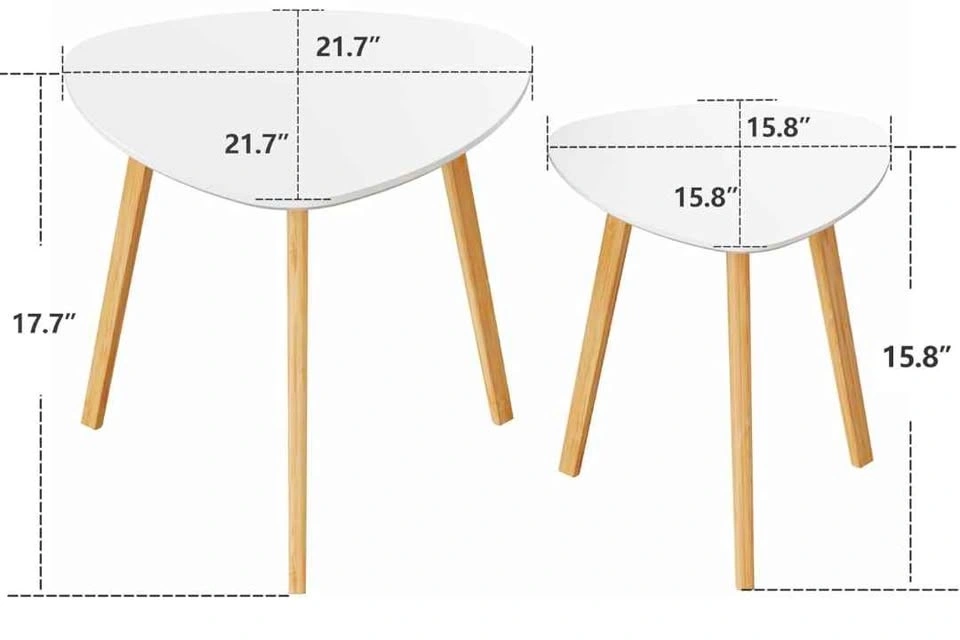 Set of 2 nesting coffee tables. Light and easy to move around and reconfigure as needed. Easy to eat at the couch. Curved triangles.