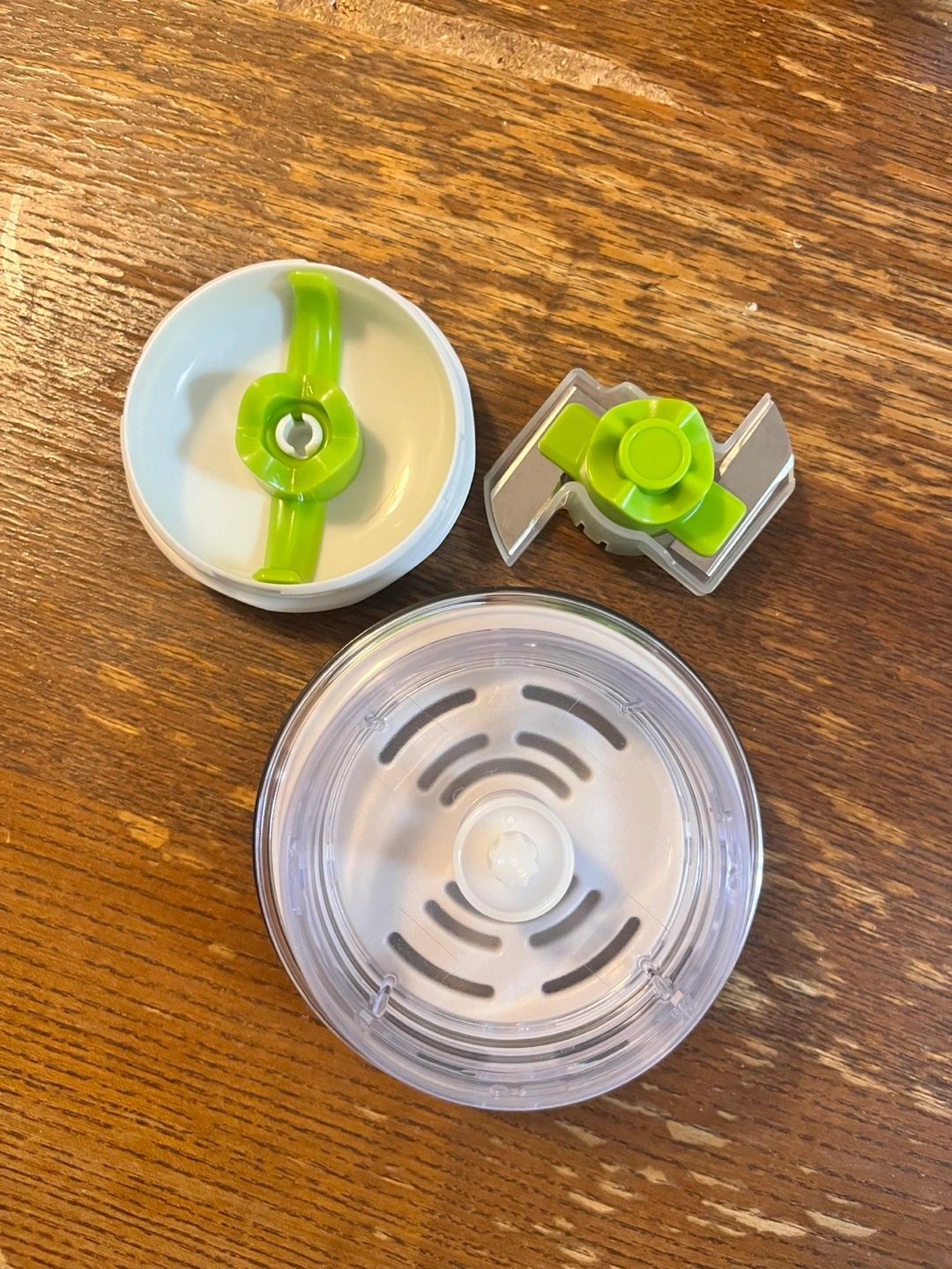 Effortless chopping with dual blades. Non-slip base. White.