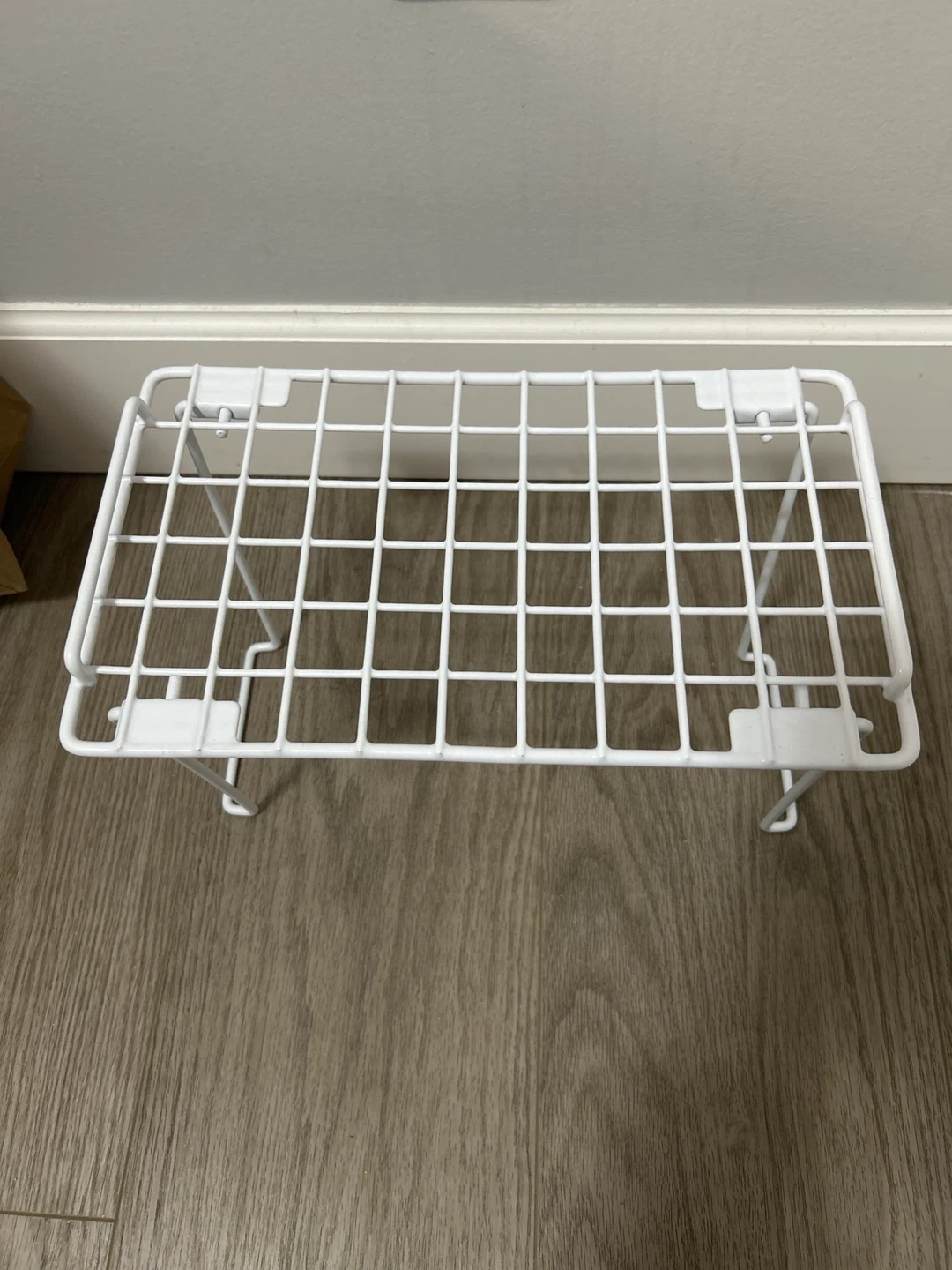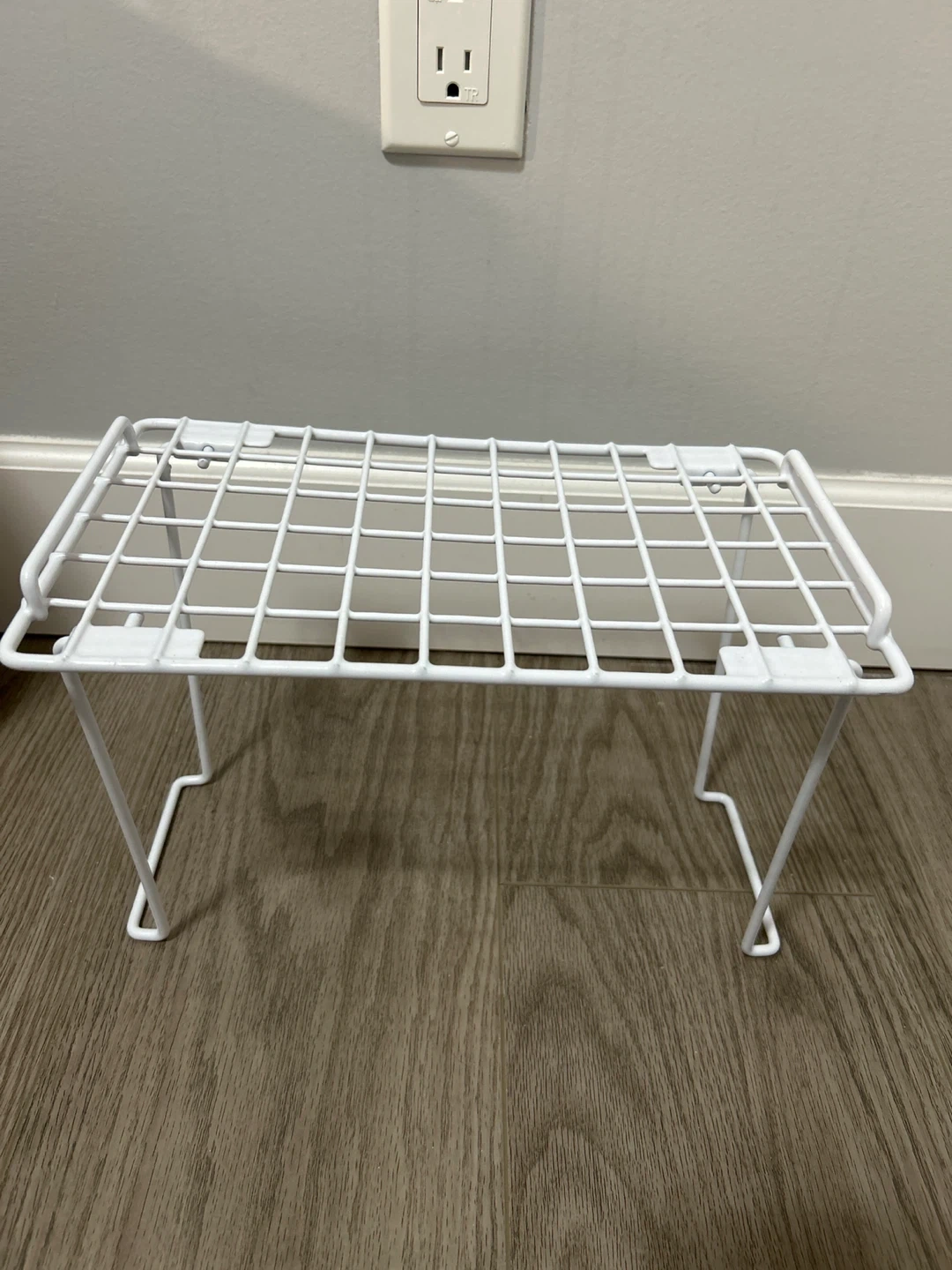 Selling a handy white wire shelf organizer! It's in great shape and perfect for adding some extra storage space in your kitchen, bathroom, or closet