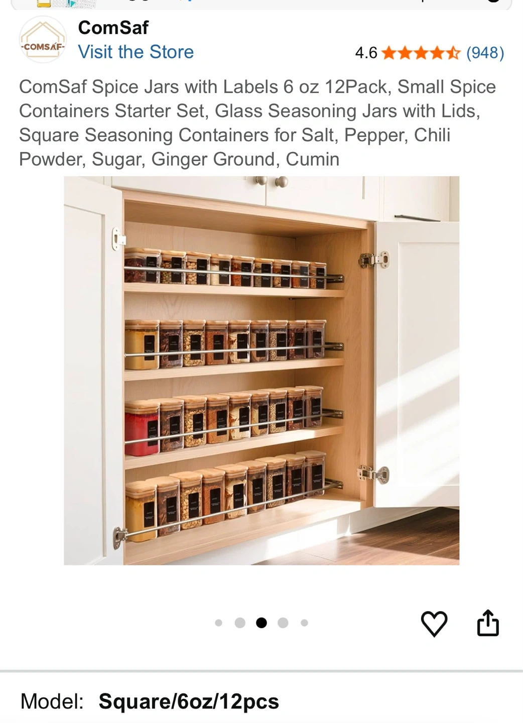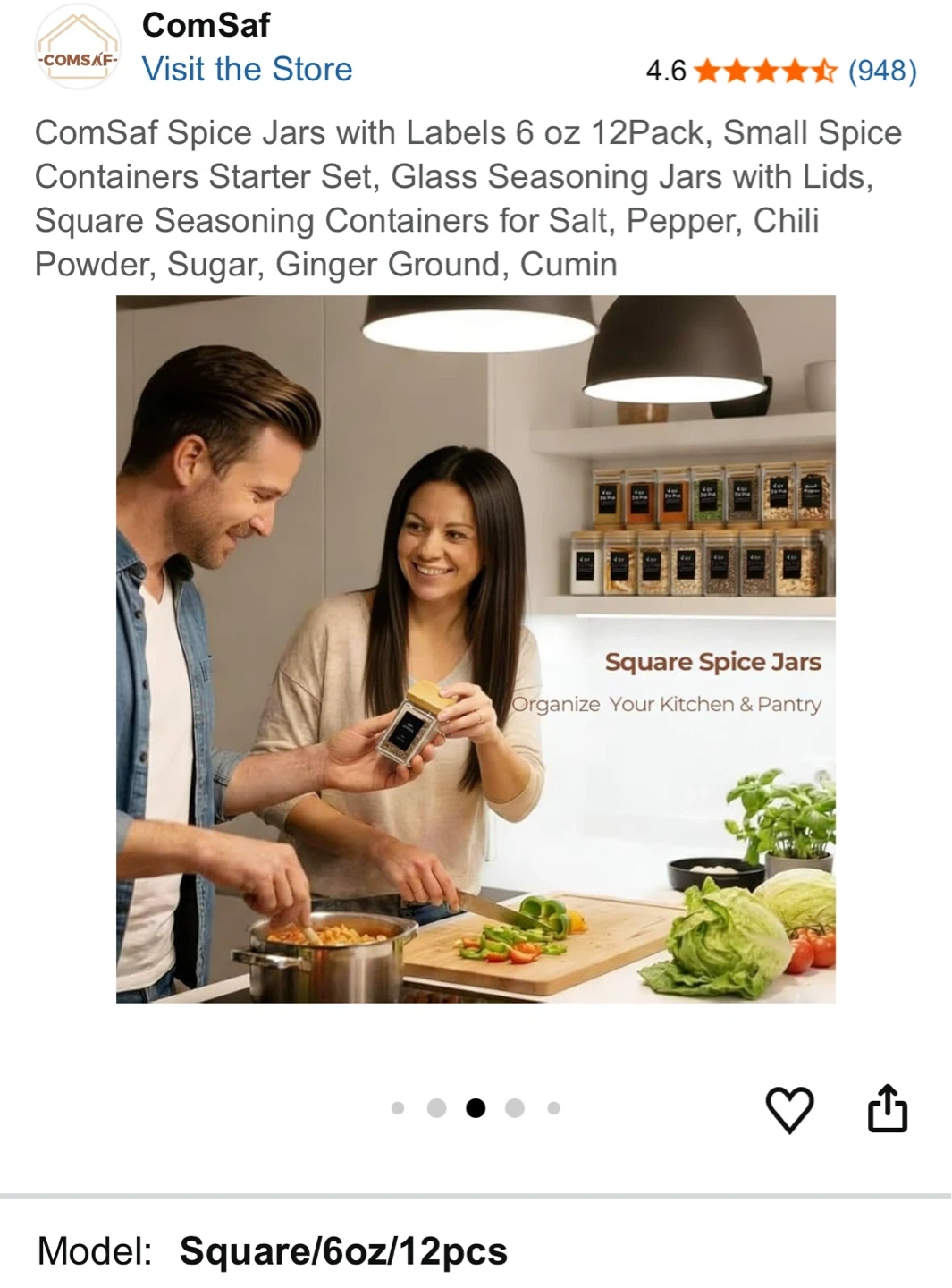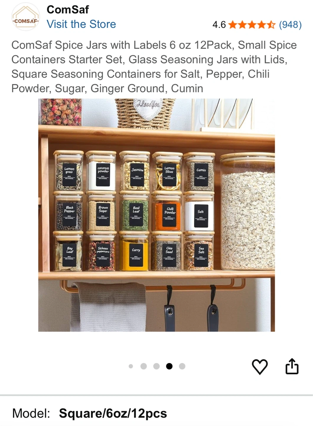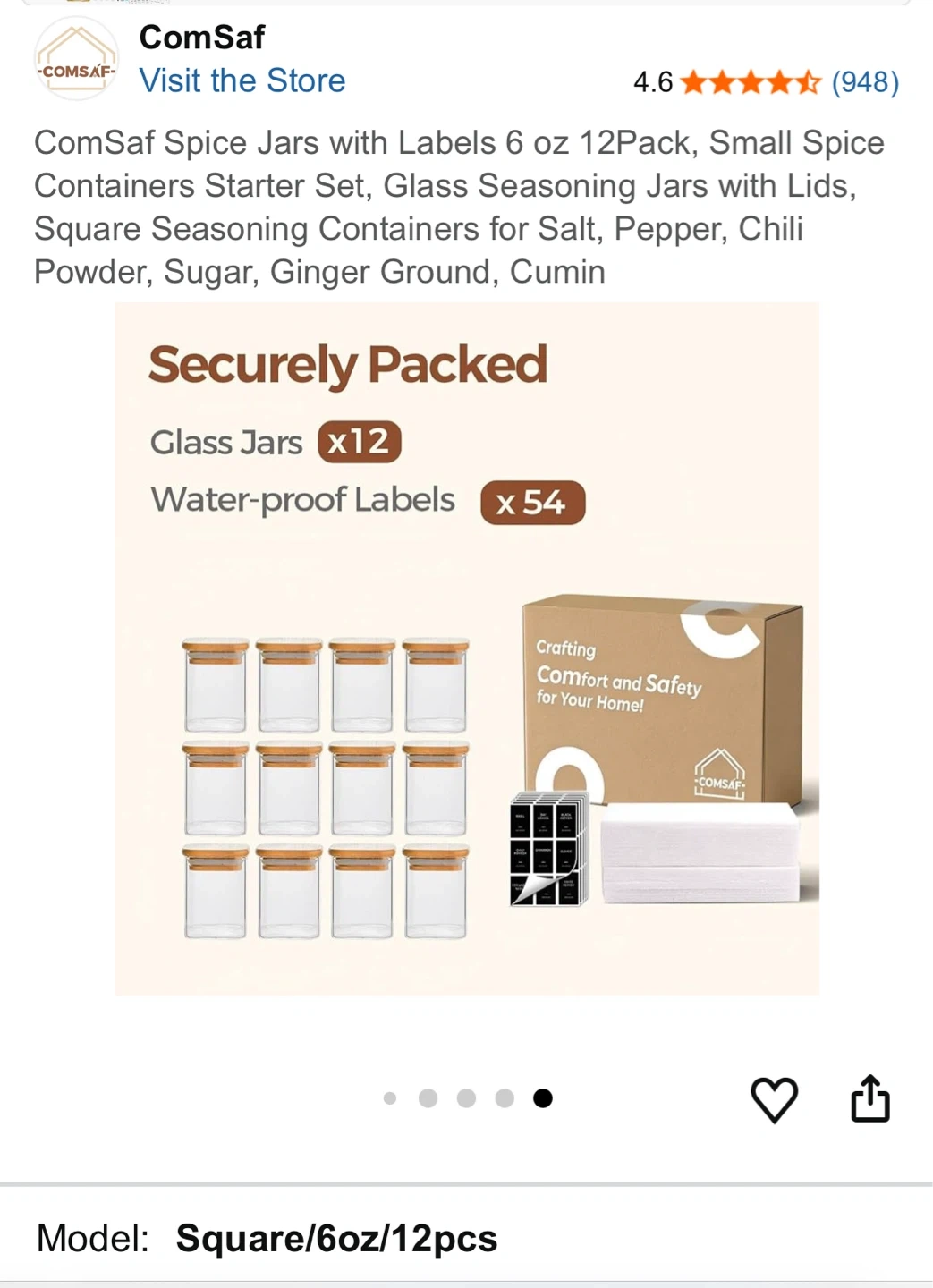 This is a 12-pack of 6 oz glass spice jars with bamboo lids and labels. They're square-shaped and great for organizing your kitchen or pantry. Each jar has a capacity of approximately 180 ml.
