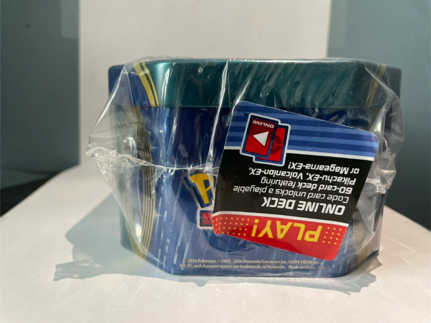 This tin features special foil Pokémon-EX cards, Pikachu-EX, Volcanion-EX, or Magearna-EX. It also includes 4 Pokémon TCG booster packs and a code card to unlock a playable deck in the Pokémon Trading Card Game Online. Get ready for battle with these powerful EX cards!