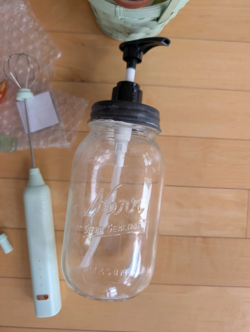 Lot of household items - garbage can, window prism, frother etc.