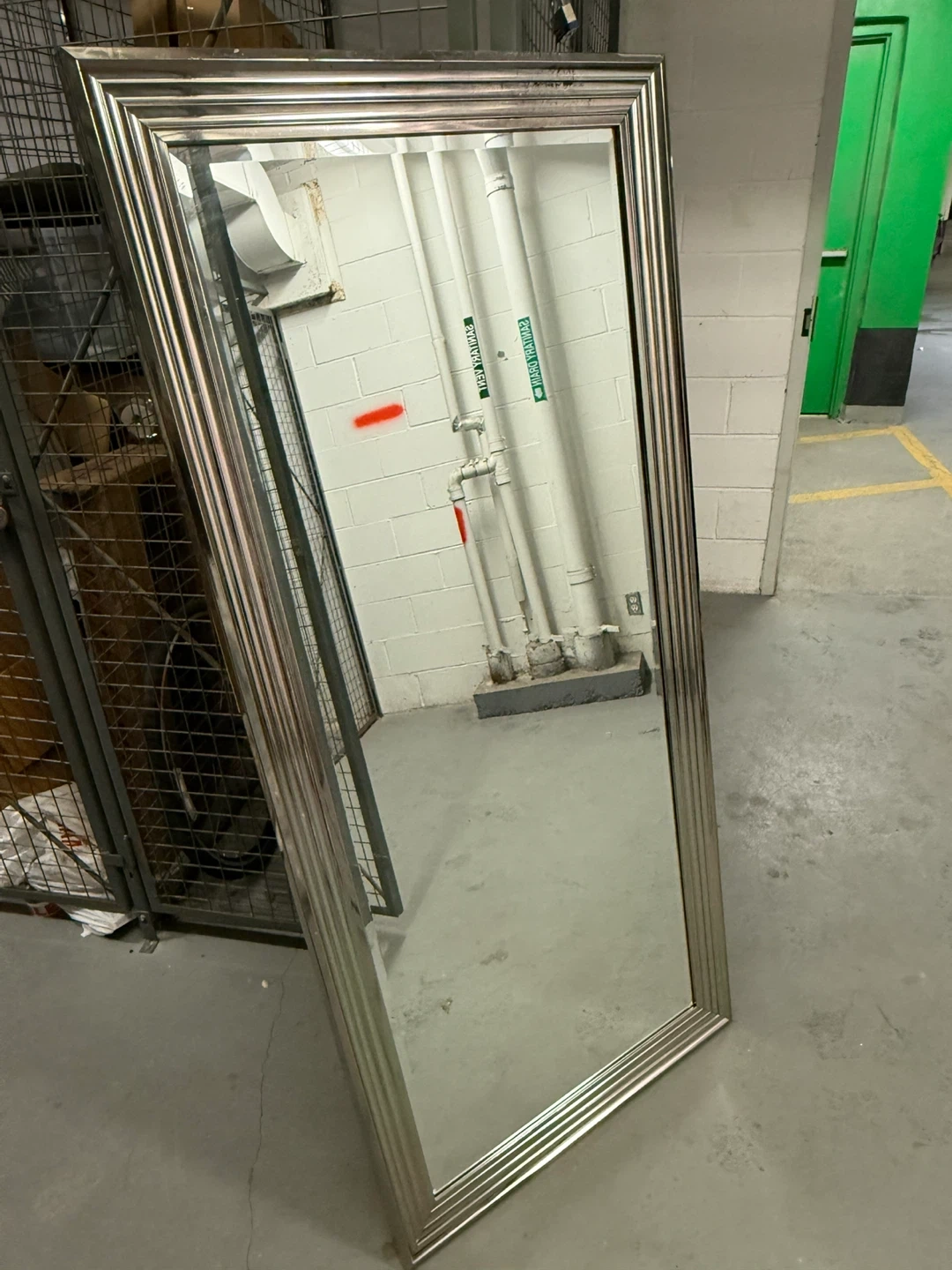 Selling a large mirror with a silver frame. It's in great condition and ready to brighten up any room! The frame adds a touch of elegance and the mirror itself is nice and clear