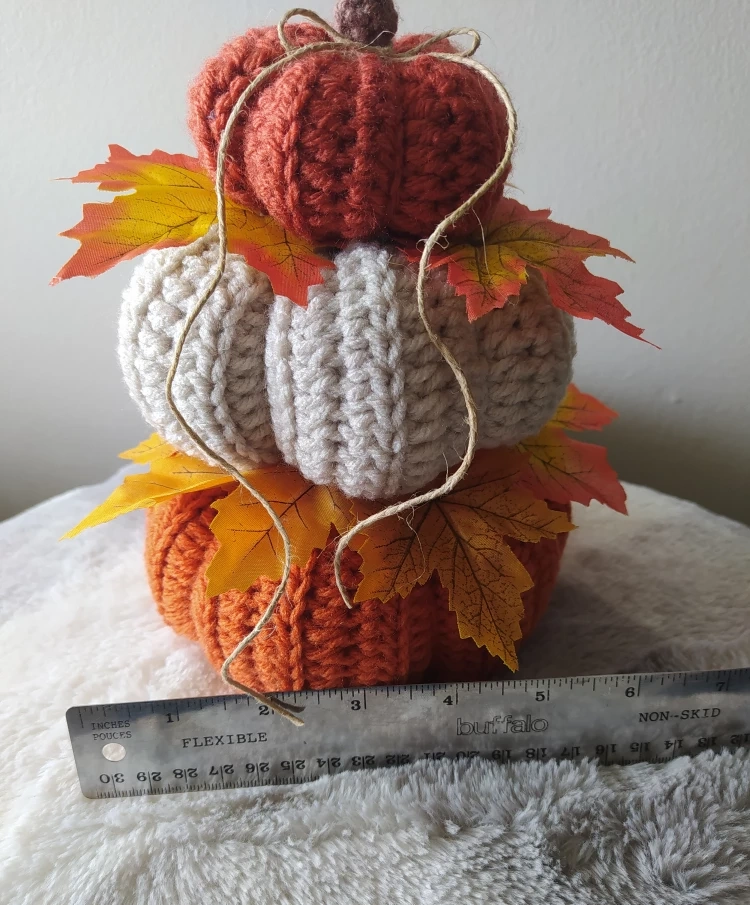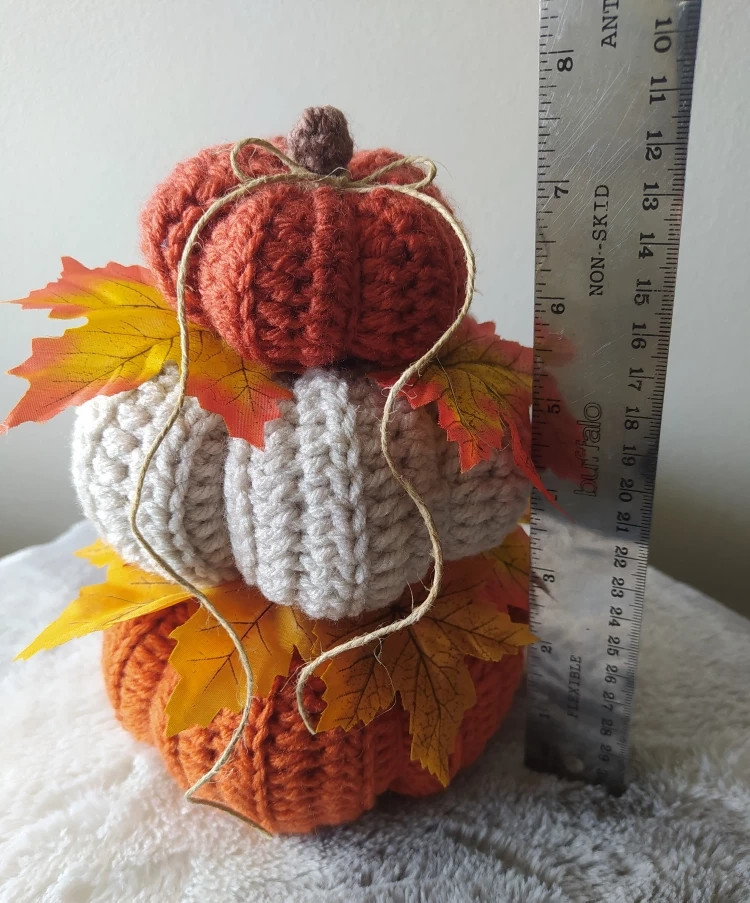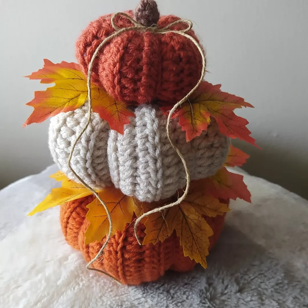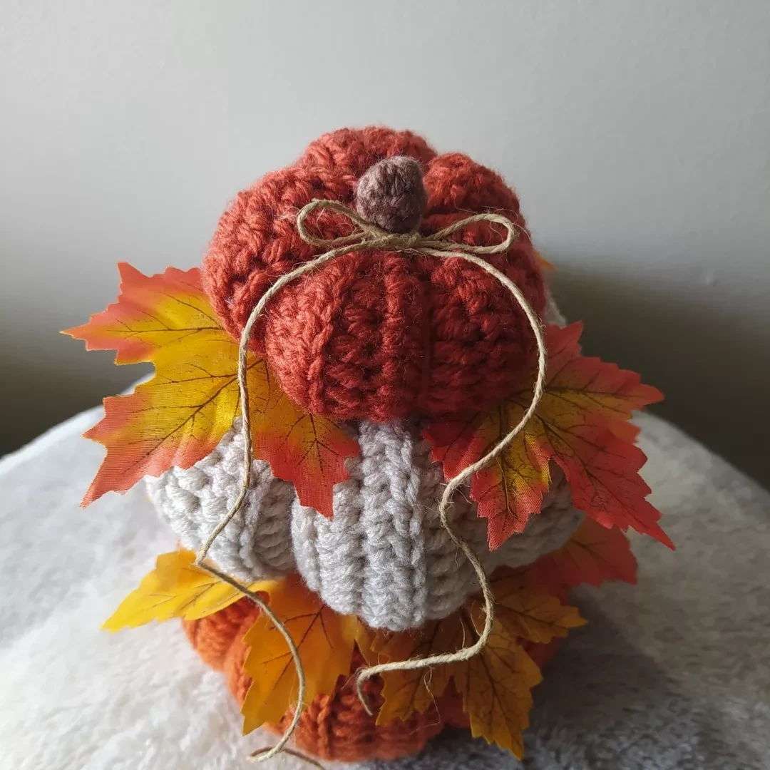 Add some cozy charm to your home with these adorable handmade pumpkins! They are also decorated with artificial leaves for a touch of nature.They are also great as gifts for your friends and family who love fall.
