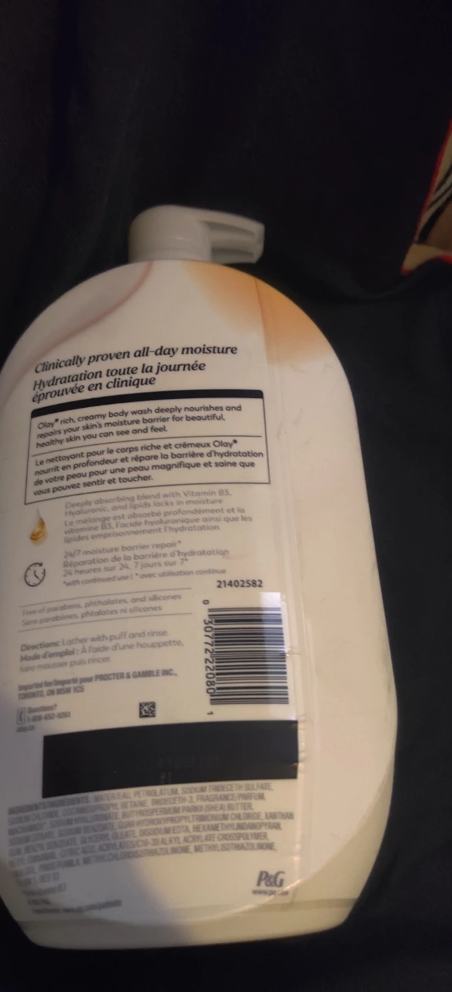 2 olay Ultra Moisture body wash with shea butter nourishes and repairs your skin's moisture barrier. It's formulated with a blend of Vitamin B3, Hyaluronic, and lipids for deep absorption.