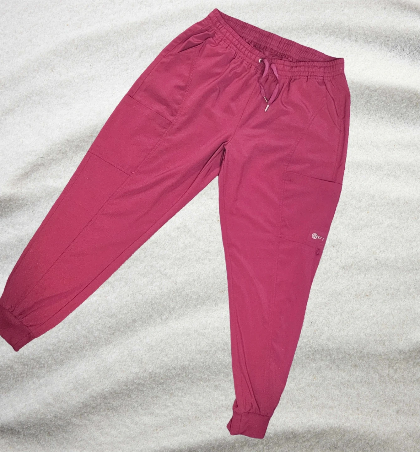 Beautiful raspberry colour. Fitted draw-string waist. Pants are cuffed.