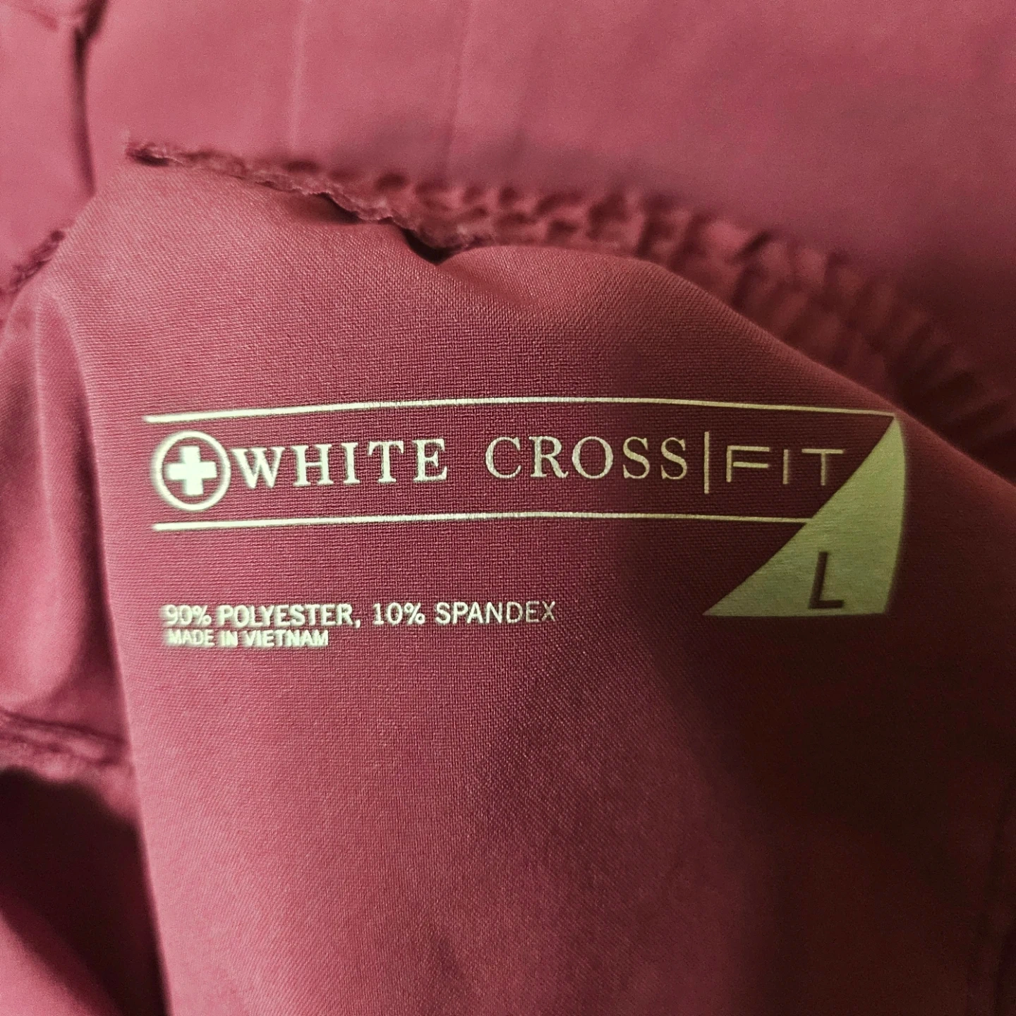 Selling a White Cross Fit scrub set in size L. The material is 90% polyester and 10% spandex. Great for anyone in the medical field or for other professions requiring scrubs!