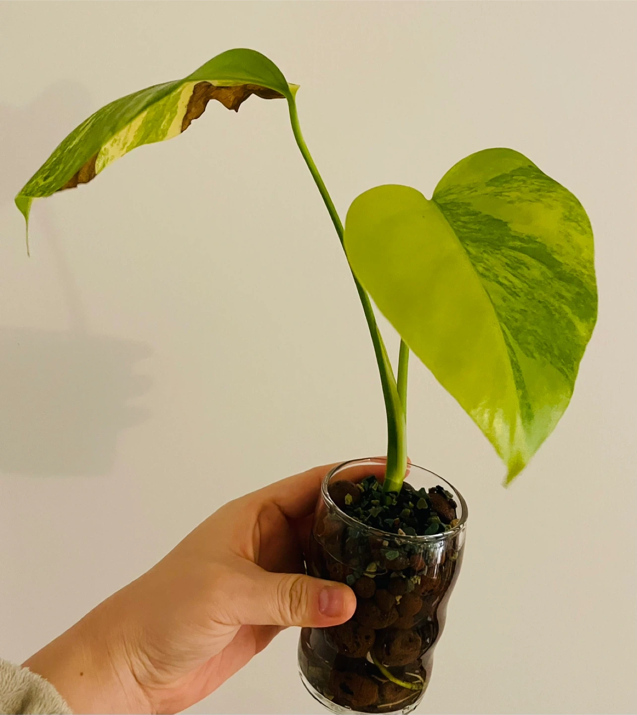 Healthy Monstera Aurea with strong roots and active new growth. Currently established in LECA (semi-hydro) for easy maintenance and pest prevention. Requires bright indirect light and a balanced nutrient solution; suitable for intermediate growers.