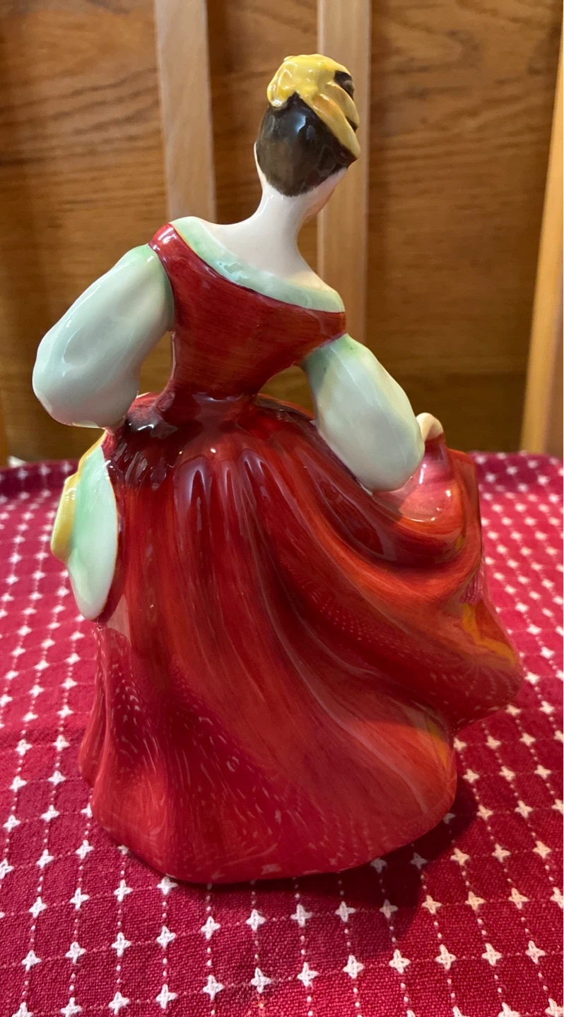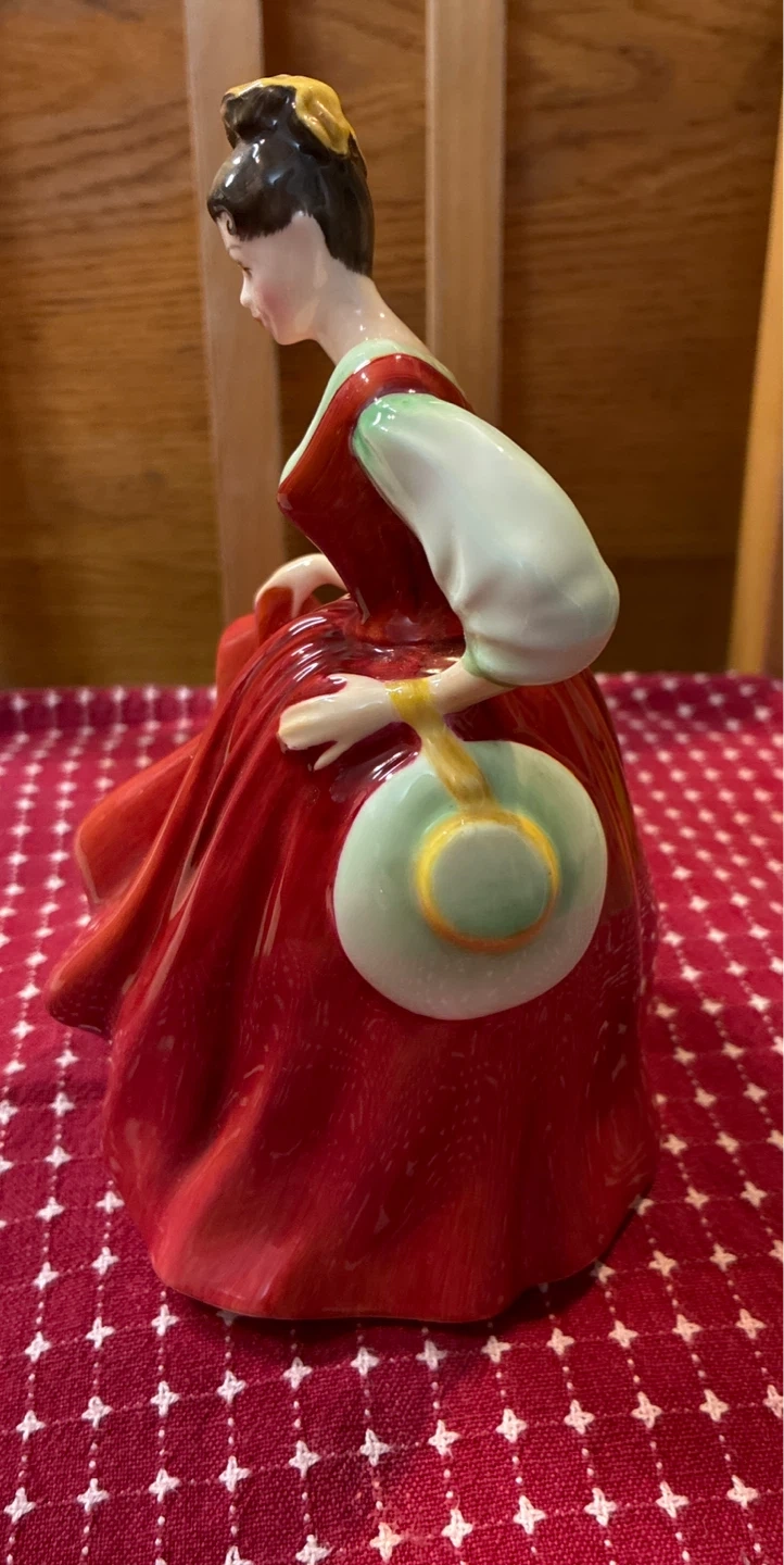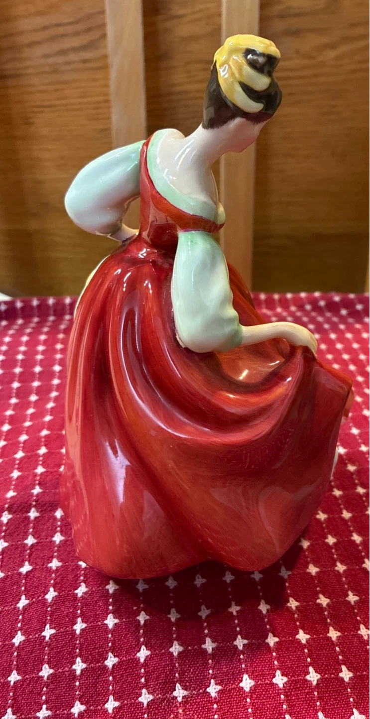 This is a Vintage 1962 Royal Doulton figurine titled “Fair Lady” and model number HN 2832 It's a beautiful porcelain piece depicting a lady in a red dress.