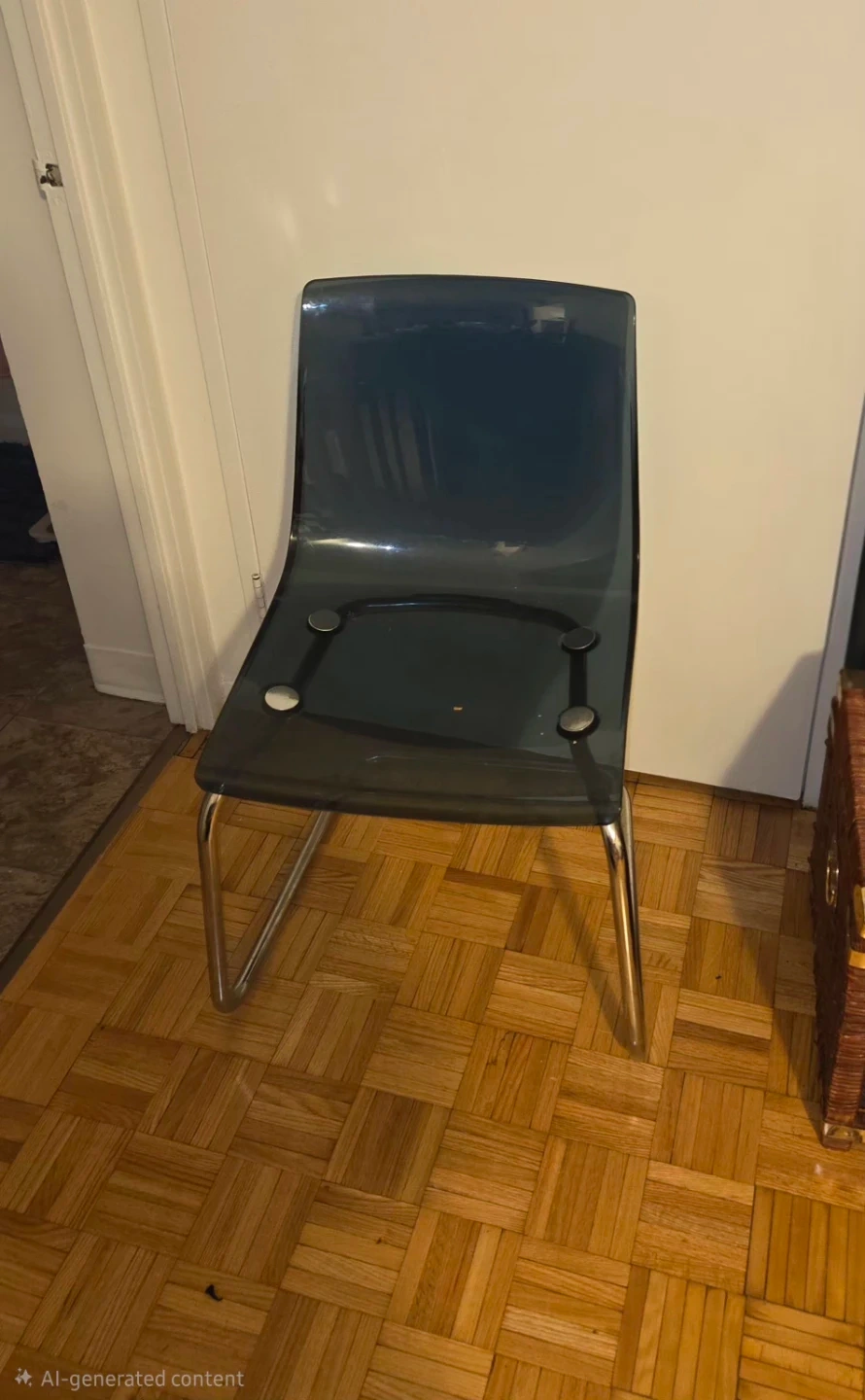 This is an IKEA Tobias chair in blue with a chrome-plated frame. It's a stylish and modern seating option. The seat is made of plastic, and the legs are metal.