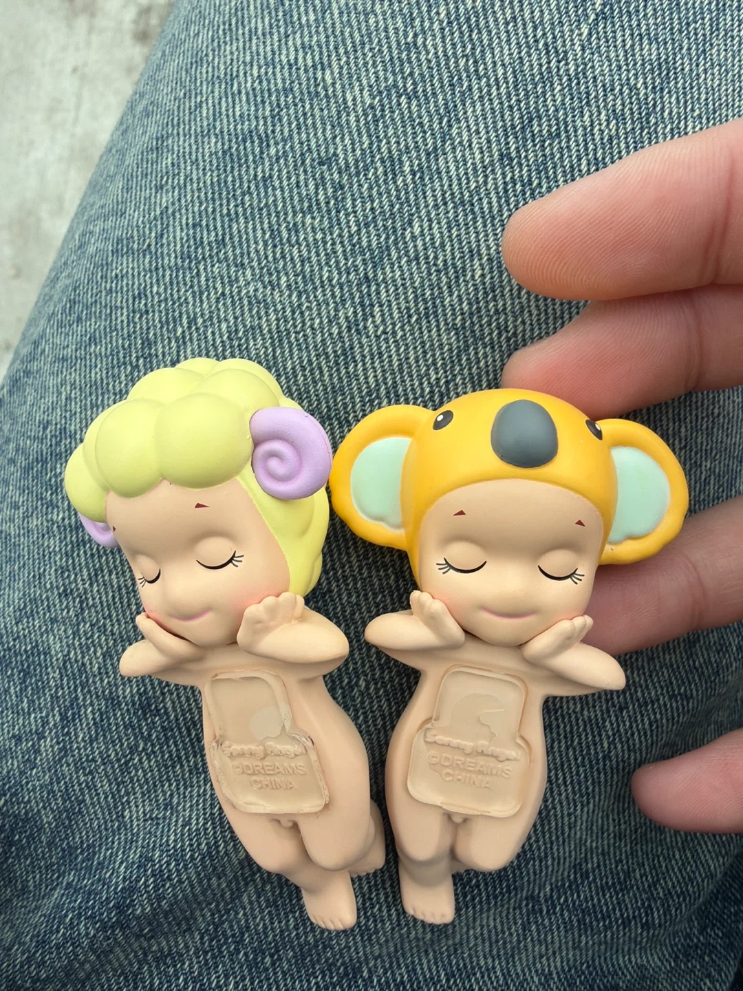 These are two Sonny Angel figures, one dressed as a sheep and the other as a koala. They are made by Dreams China. These figures are collectible and would appeal to fans of the Sonny Angel brand.