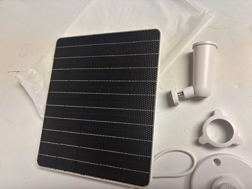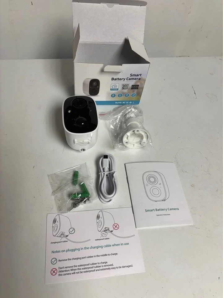 GMK outdoor security camera in great condition. Wireless and easy to install, powered by a 4500mAh battery and includes ONE 6W solar panel, so no wiring needed. Records in 2K with color night vision and AI motion detection. You can check the camera anytime from your phone. Includes two way talk and a built in siren for added security. Perfect for yard, driveway, garage, or cottage.