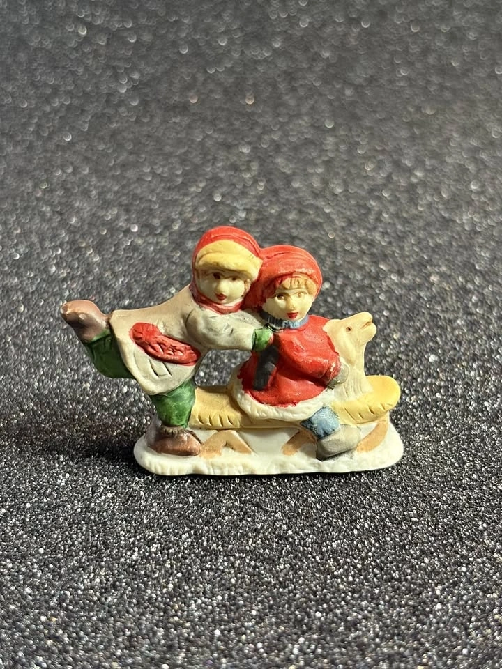 Vintage Christmas village figurine of a Couple Sledding in great condition.