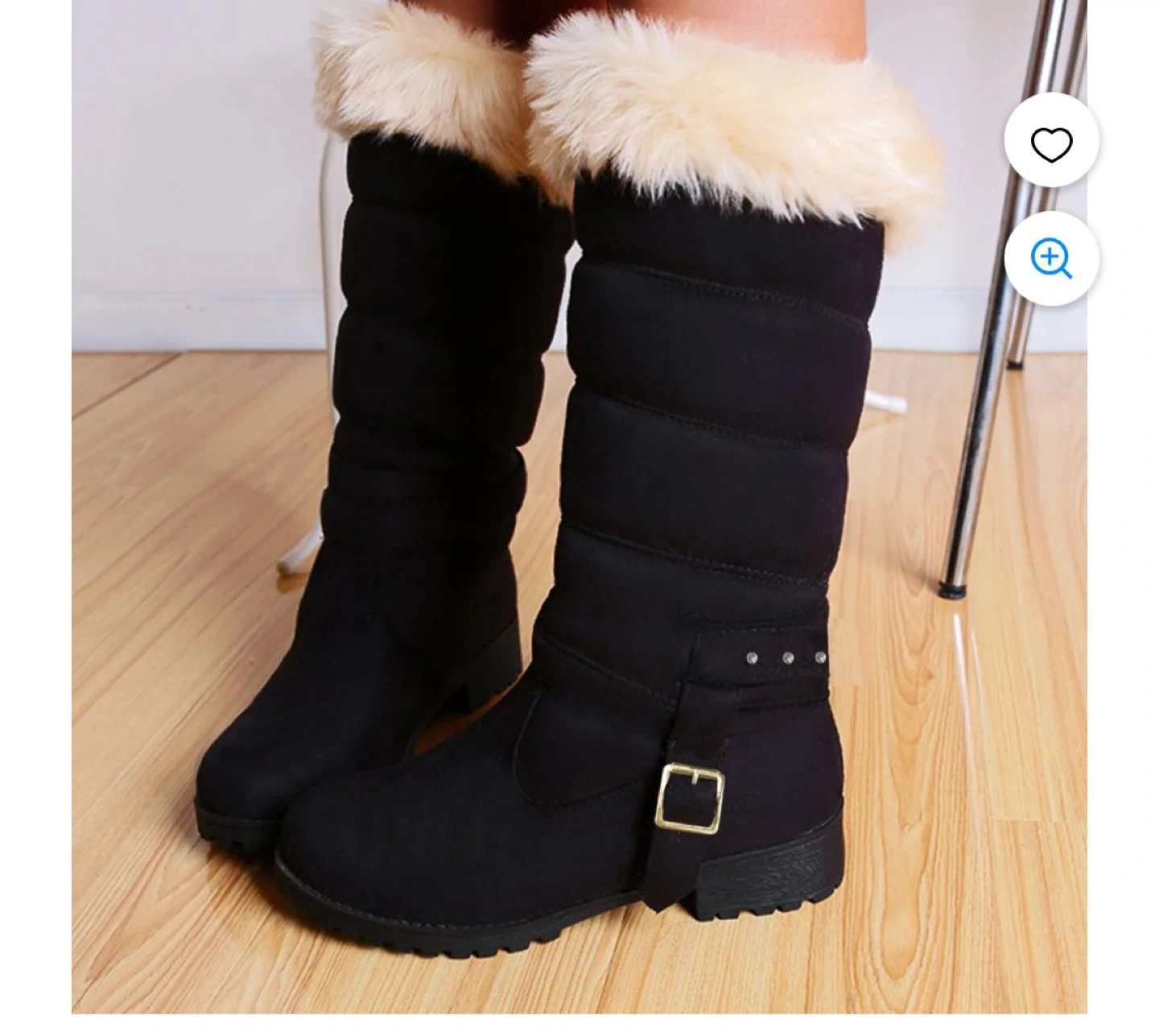 QHFBli Womens Snow Boots Women's Fashion Belt Heel Buckle Boots Warm Mid Calf Winter Thick Sole Comfortable Traction Durable Outdoor Cold