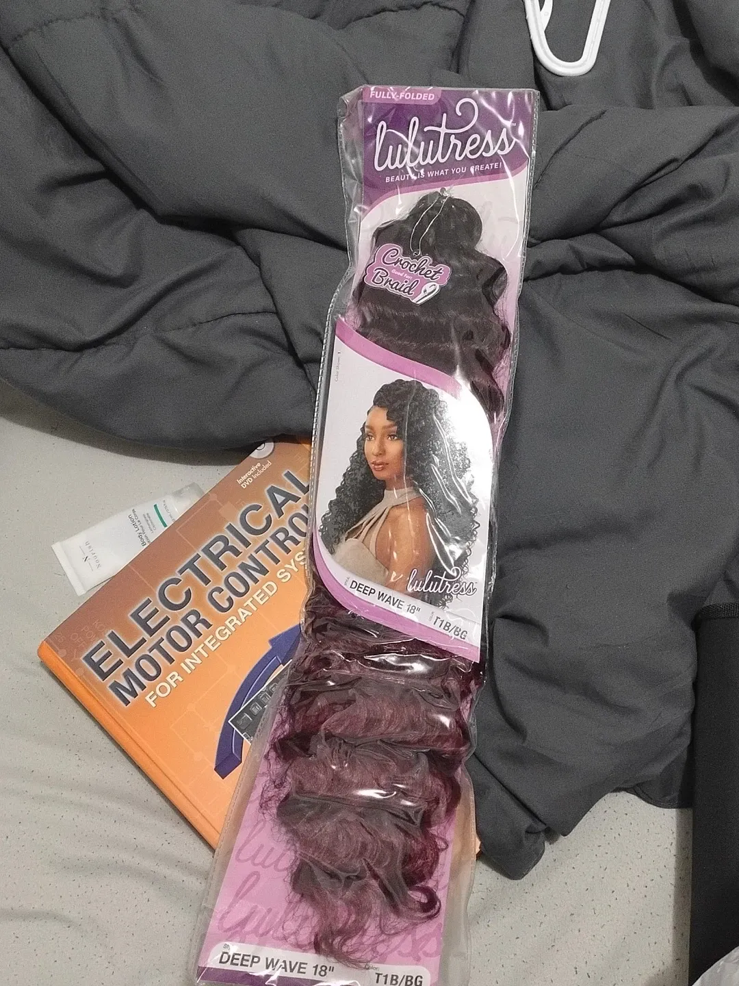 This is Lulutress Deep Wave crochet braid. It's 18 inches long and the colour is T1B/BG. It's a fully-folded package.