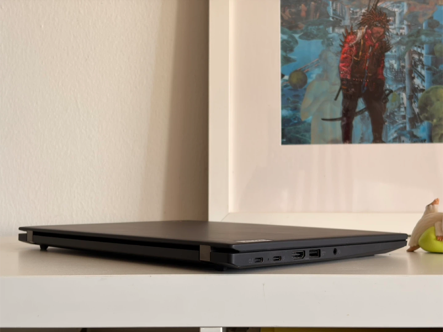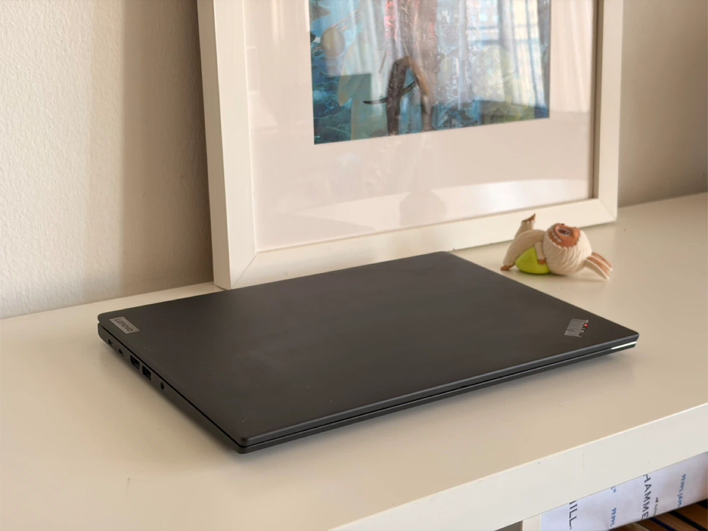 This is a Lenovo ThinkPad T14s gen 3 laptop. It's a sleek and professional machine. It comes with an Intel EVO platform processor and Dolby Audio.
