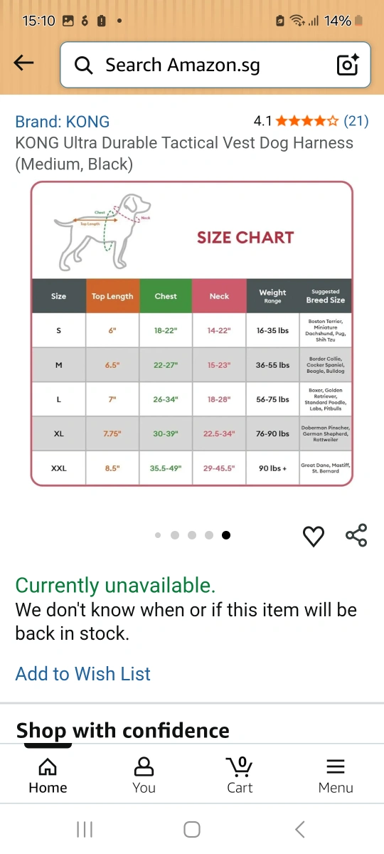 KONG Ultra Durable Tactical Vest Dog Harness in size small (check last picture for measurements). It's made for toughness and designed for active dogs. Offers adjustable straps for a secure fit. Good for training or everyday walks! Too large for my dog.