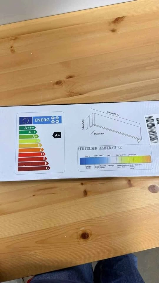 Brand new. App control for easy adjustments. Adjustable color temperature for personalized lighting. Sleek black design fits modern bathroom decor. Dimmable LED for energy-efficient illumination. Ready for installation and use today.