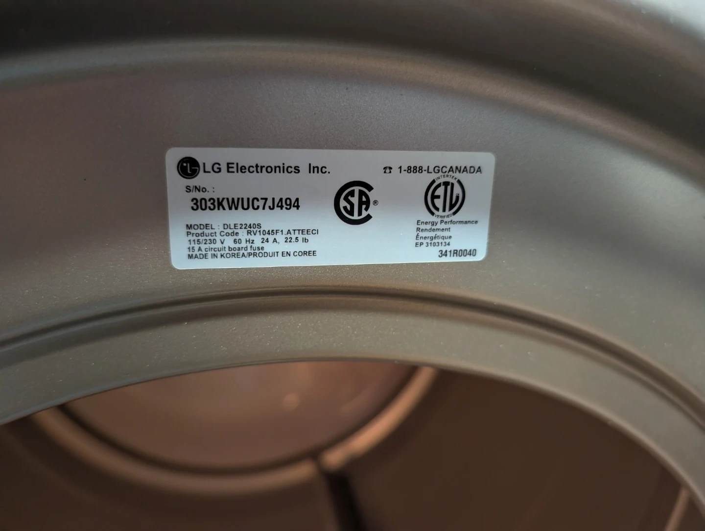 Selling an LG Dryer, model DLE2240S. Serial number in second photo. Works perfectly, and looks great.
