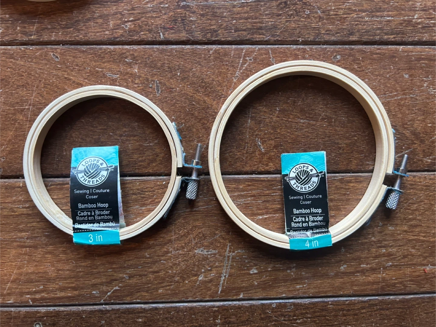 13 new bamboo craft hoops. 6 are 4inch and 7 are 3inch. Comes with fabric. Everything comes together for $10 cash only. Pick up in Sundance SE. Will hold for one day only.