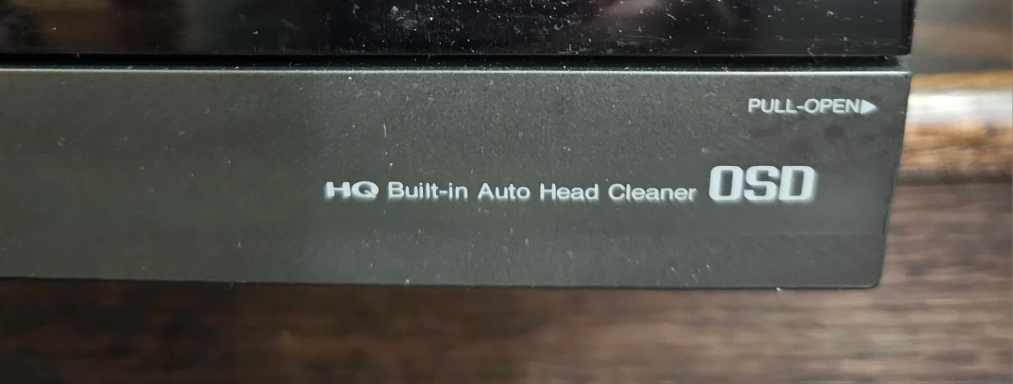 This is a Samsung SV-200 VCR. It has HQ built-in auto head cleaner and OSD. Power consumption is 27W.