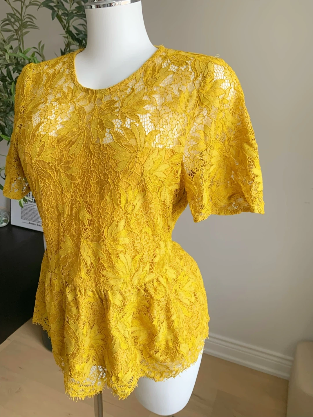 Feminine fitted waist with flared hem that enhances the silhouette. Beautiful floral lace texture throughout.